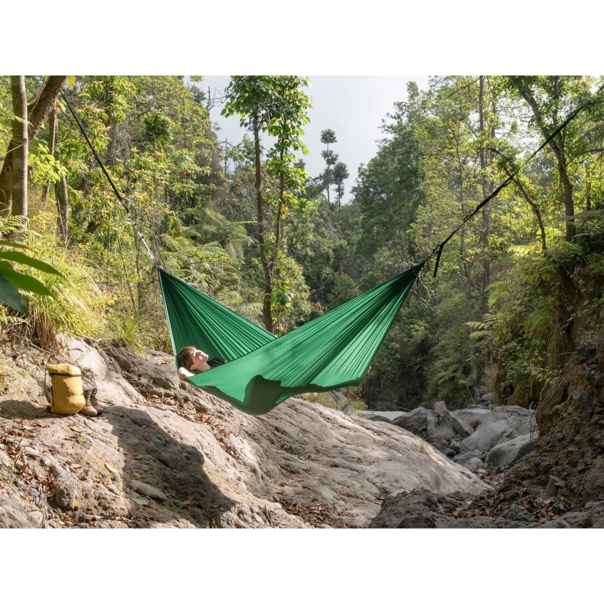 HAMAK TTTM jednoosobowy Lightest forest gren TML51 - jednoosobowy, turystyczny hamak spadochronowy stworzony dla podróżników. Dopuszczalne obciążenie wynosi 150 kg.