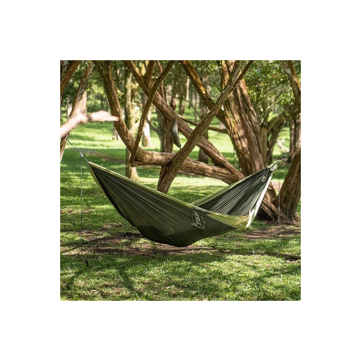 HAMAK TTTM - turystyczny hamak z lekkiego nylonu spadochronowego stworzony dla podróżników. Dopuszczalne obciążenie wynosi 200 kg. Hamak jest trwały, elastyczny, oddychający i przyjazny dla skóry.