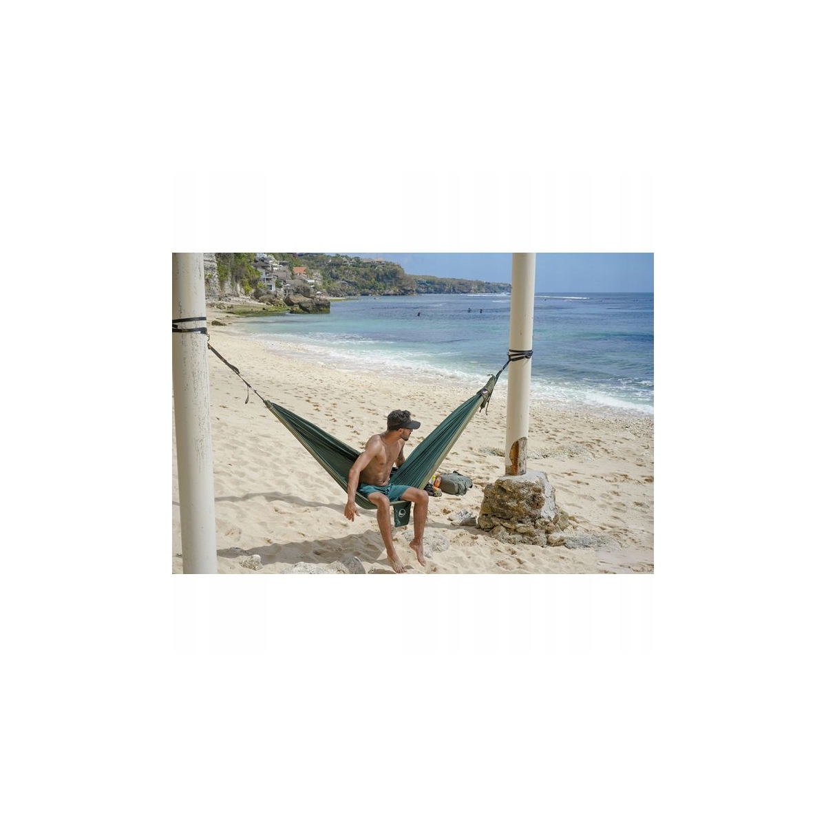 Idealny do zabrania w podróż, umożliwia łatwy do zorganizowania komfortowy wypoczynek w terenie. Hamak zapakowany jest w wygodną torbę, która zajmuje mało miejsca i zmieści się w każdym bagażu.