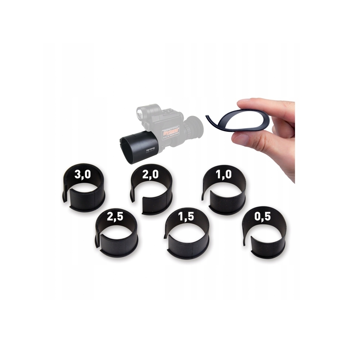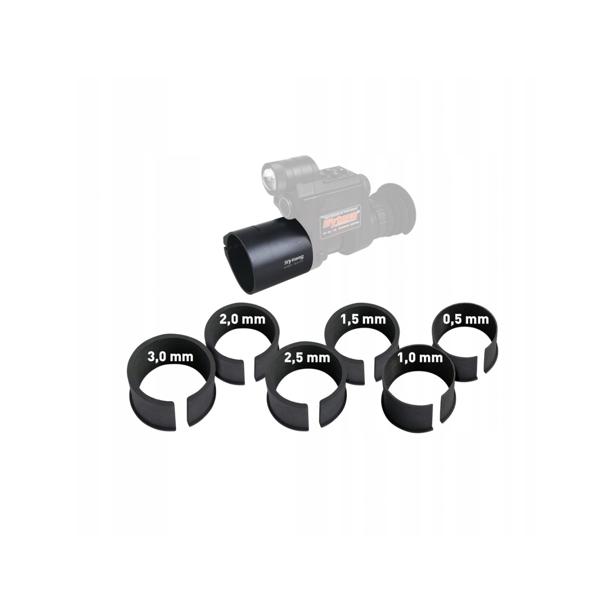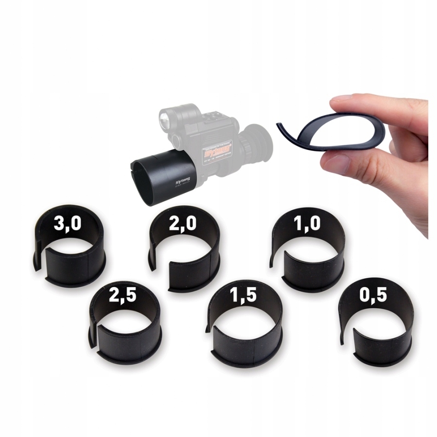 Komplet Pierścieni SYTONG - o grubości 0,5-0,3 mm przeznaczonych do adaptera Sytong HT-66. Pierścienie umożliwiają odpowiednie skompensowanie odległości pomiędzy noktowizorem i lunetą.