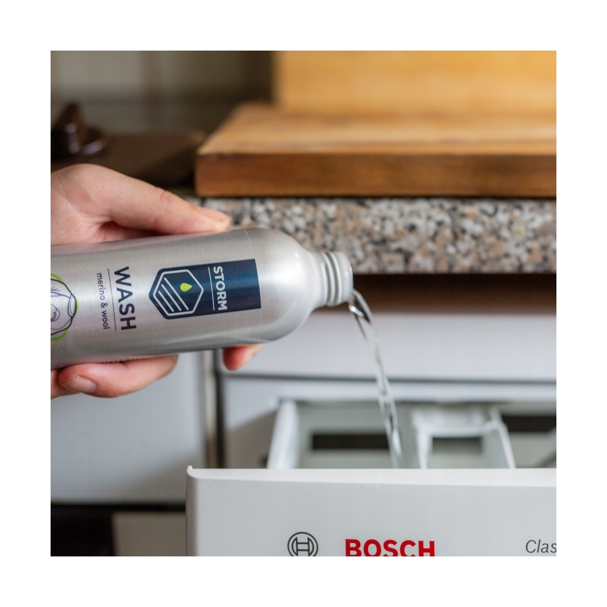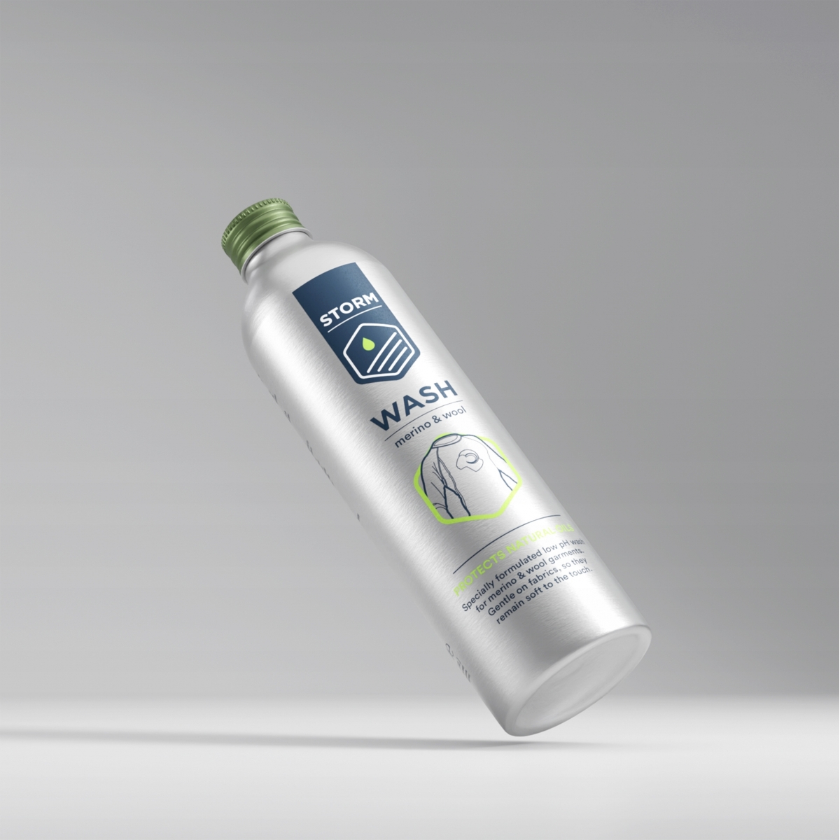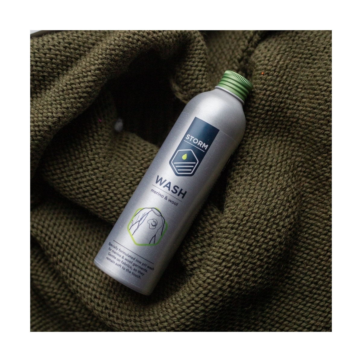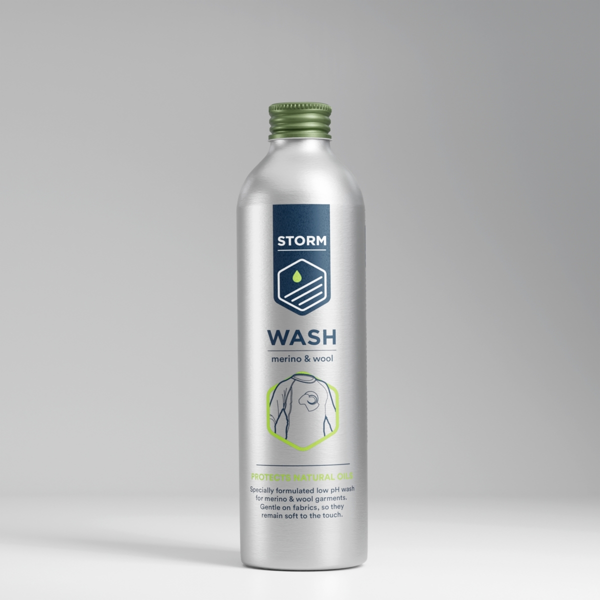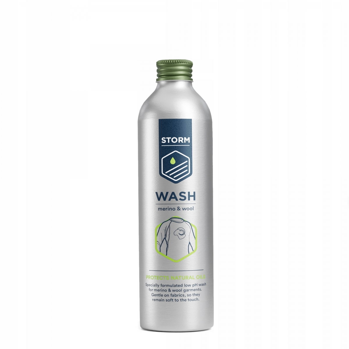 Storm Merino & Wool Wash to specjalnie opracowany środek czyszczący o pH od 5 do 7, które idealnie dopasowuje się do wełny i ją pielęgnuje.