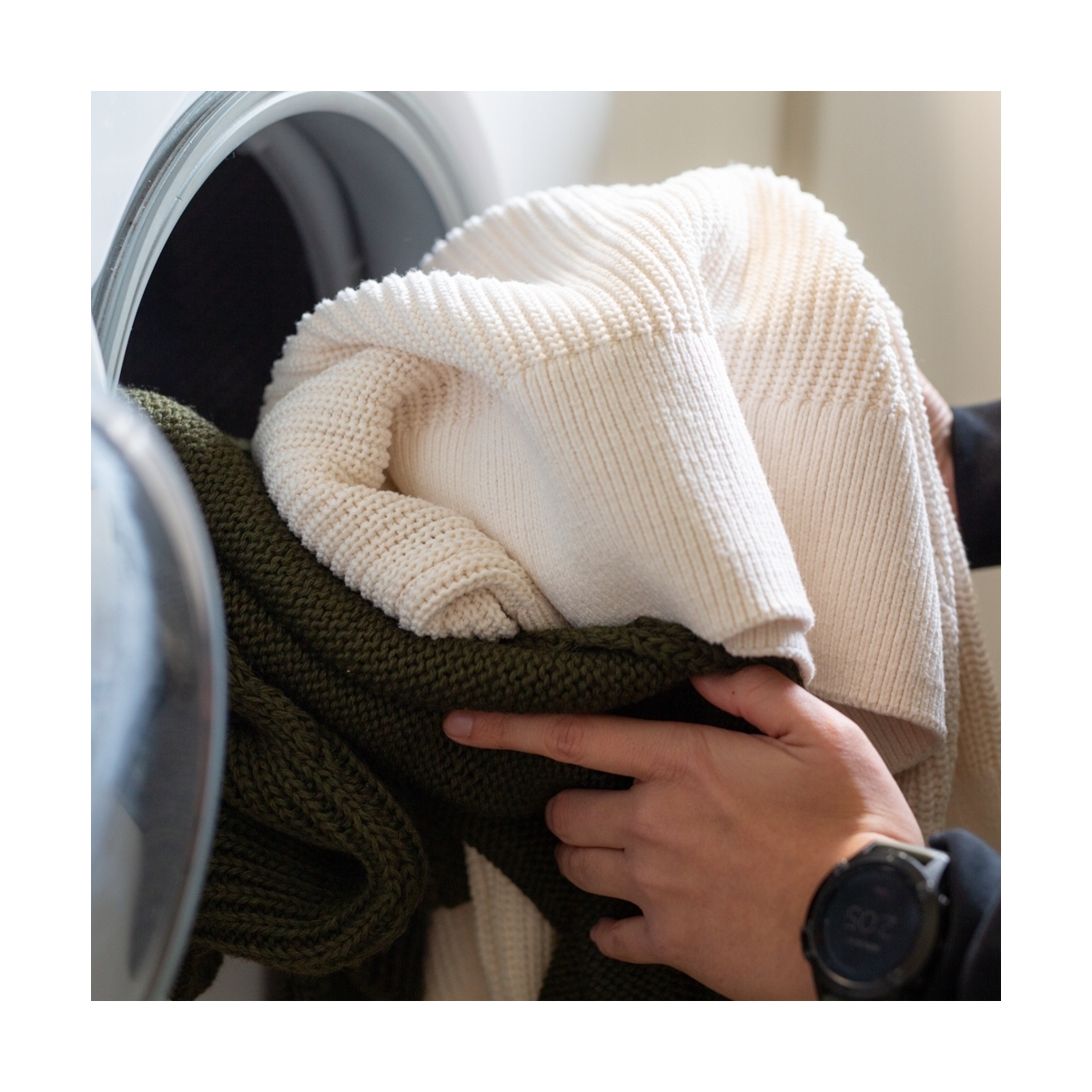 - Po wyjęciu z pralki rozłóż odzież na płasko oraz owiń ściereczką kuchenką, aby wchłonęła wilgoć. Nie wieszaj ubrań - rozciągną się podczas suszenia.