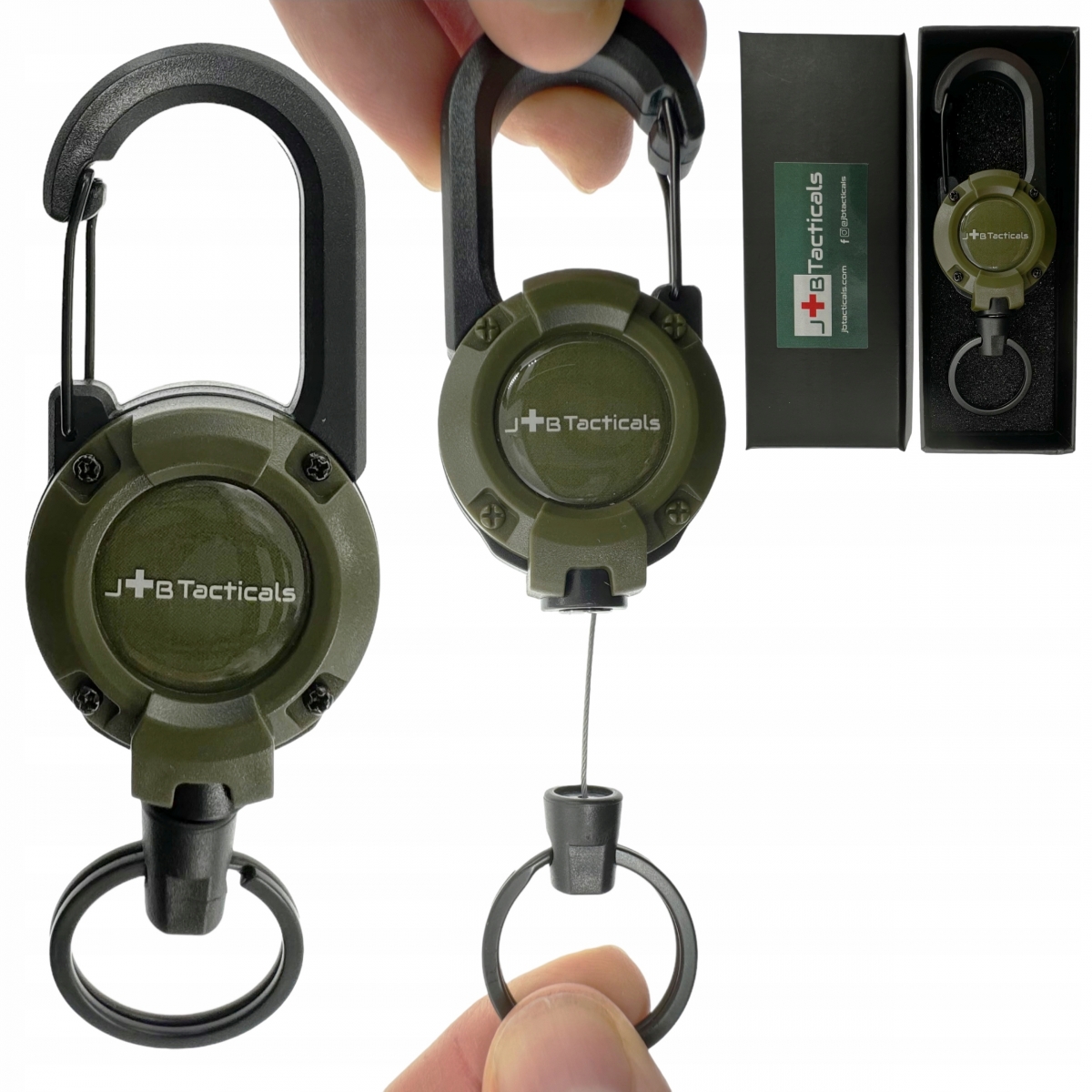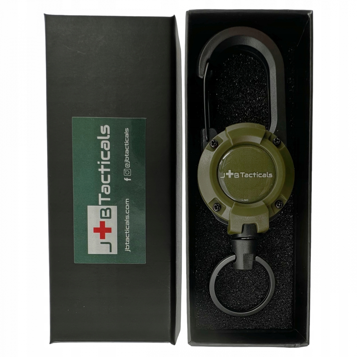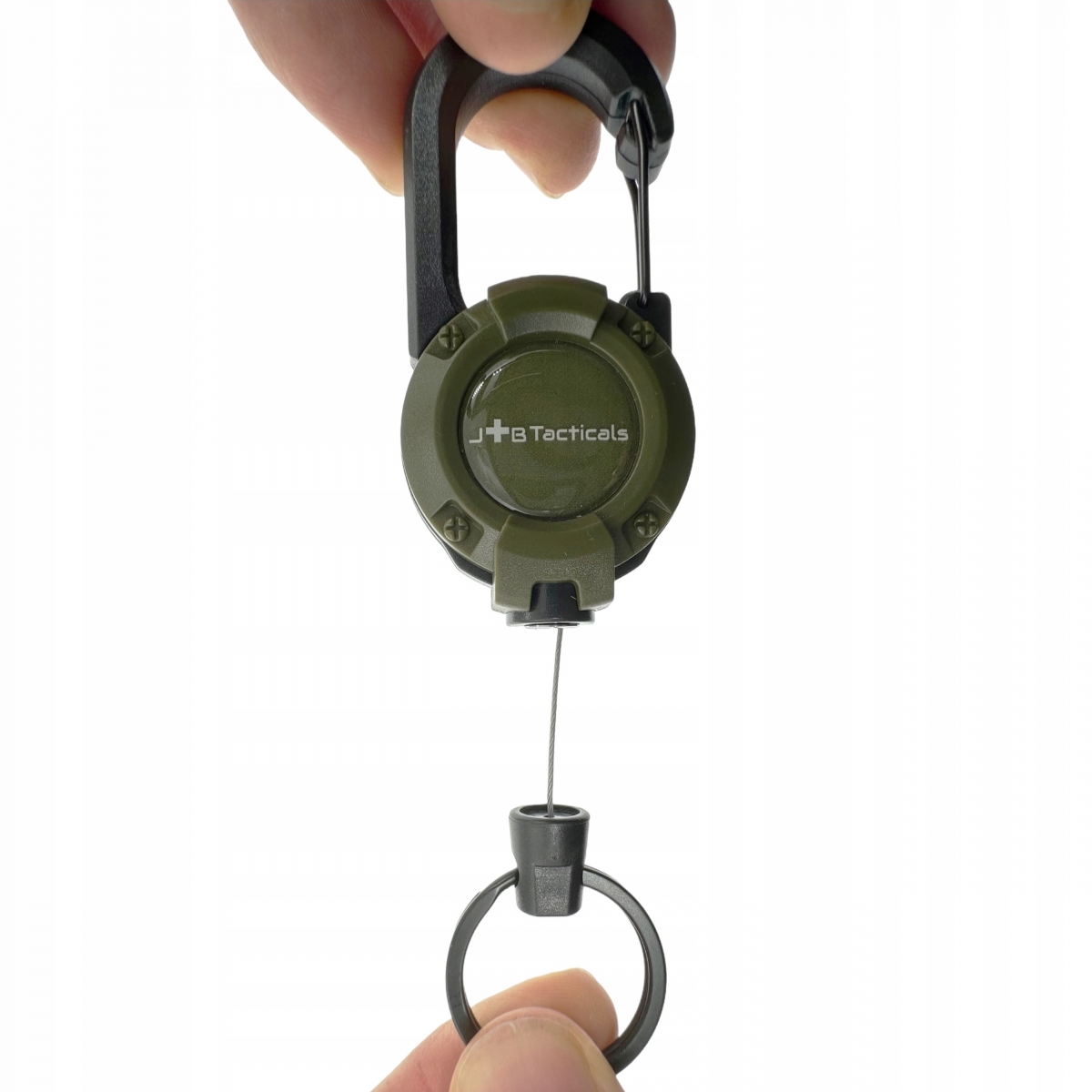 ⭐Doskonale widoczne logo producenta umieszczone jest na obu stronach retraktora, co dodaje mu profesjonalnego wyglądu oraz potwierdza wysoką jakość i markę JB Tacticals.