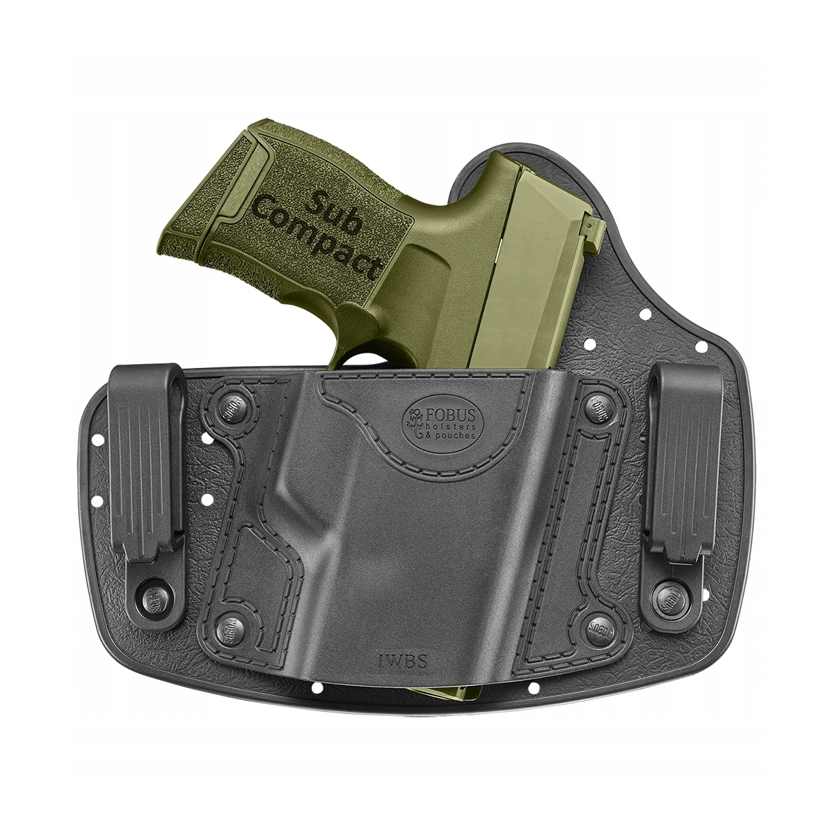 Kabura FOBUS IWBS CC - kabura znanej, izraelskiej firmy Fobus. Kabura jest zaprojektowana tak, aby utrzymać niski profil, symulując naturalny sposób noszenia broni wewnątrz - za paskiem bez kabury. Tył kabury jest zrobiony z elastycznego, perforowanego materiału, który jest między pistoletem a ciałem. Z przodu kabura wykonana jest z trwałego materiału i dodatkowo posiada dwa klipsy na pasek, aby umieścić kaburę na wysokości paska.