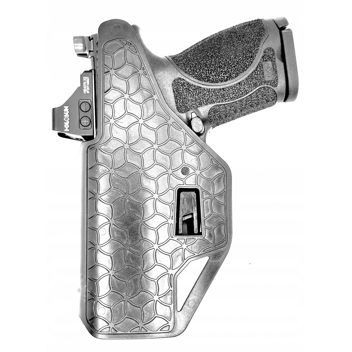 Wykonana ze specjalnego tworzywa, specjalnie zaprojektowane i wykonana metodą wtryskową. Modelu tego nie można skopiować w skórze, czy w innym materiale. Wyposażona w płetwę mocującą kaburę do brzegu spodni. Nie odstaje, nie przeszkadza w pozycji siedzącej.