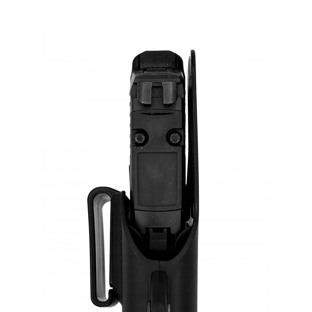 Broń mocowana jest na wcisk, lecz zastosowany materiał i faktura kabury zapobiega rysowaniu powierzchni broni.