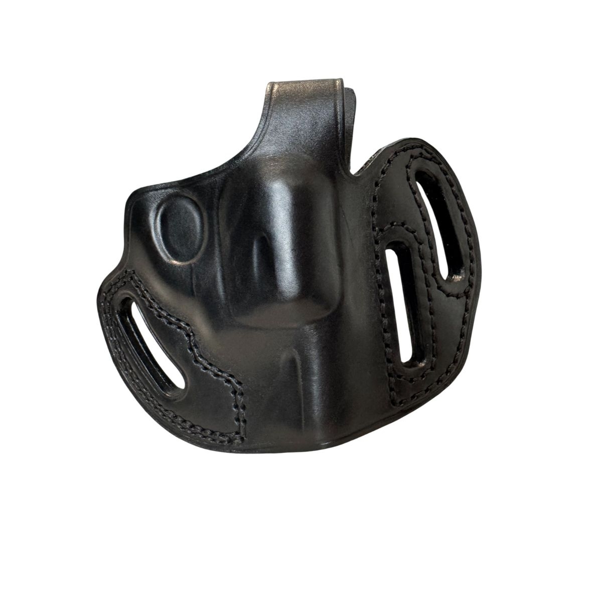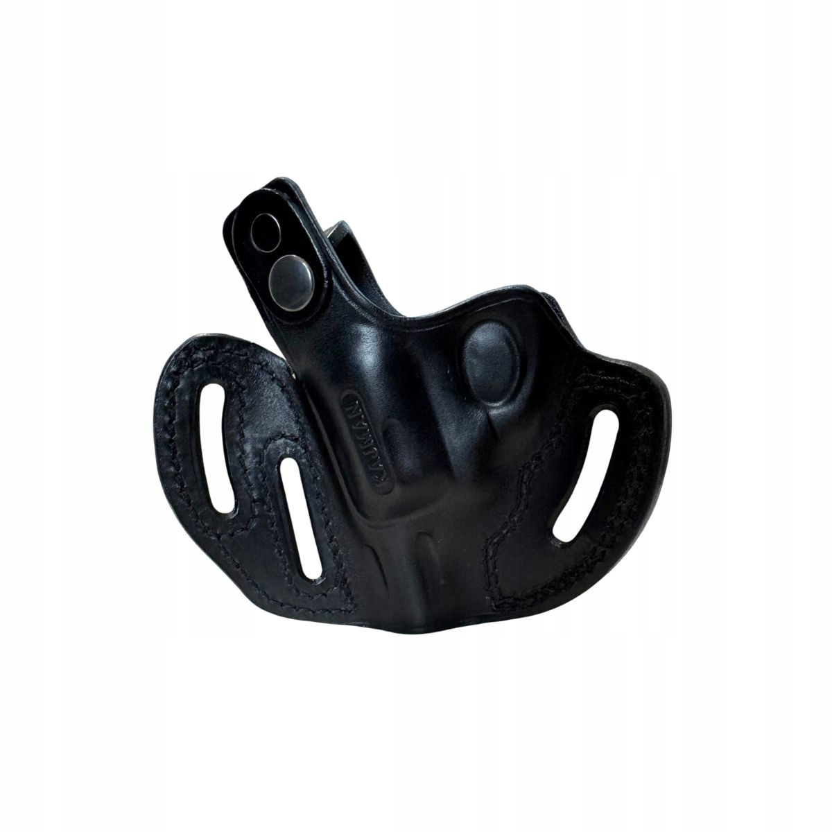 - Kabura w odpowiednim położeniu mocowana jest do pasa. Profilowana i odpowiednio wytłaczana kabura wykonana z prawdziwej skóry.