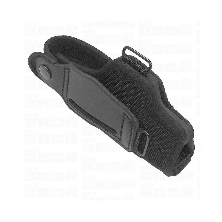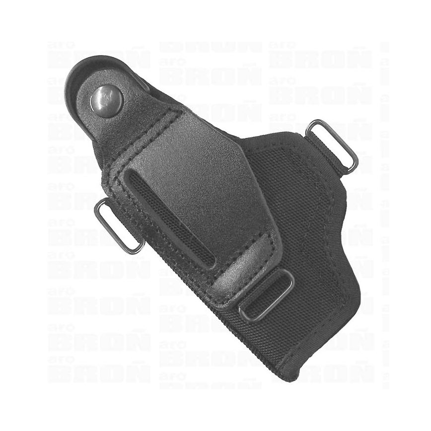 Istnieje możliwość zamocowania zarówno na pasie poprzez szeroki otwór w kaburze lub na szelkach. Kabura posiada 3 przelotki do przełożenia szelek.