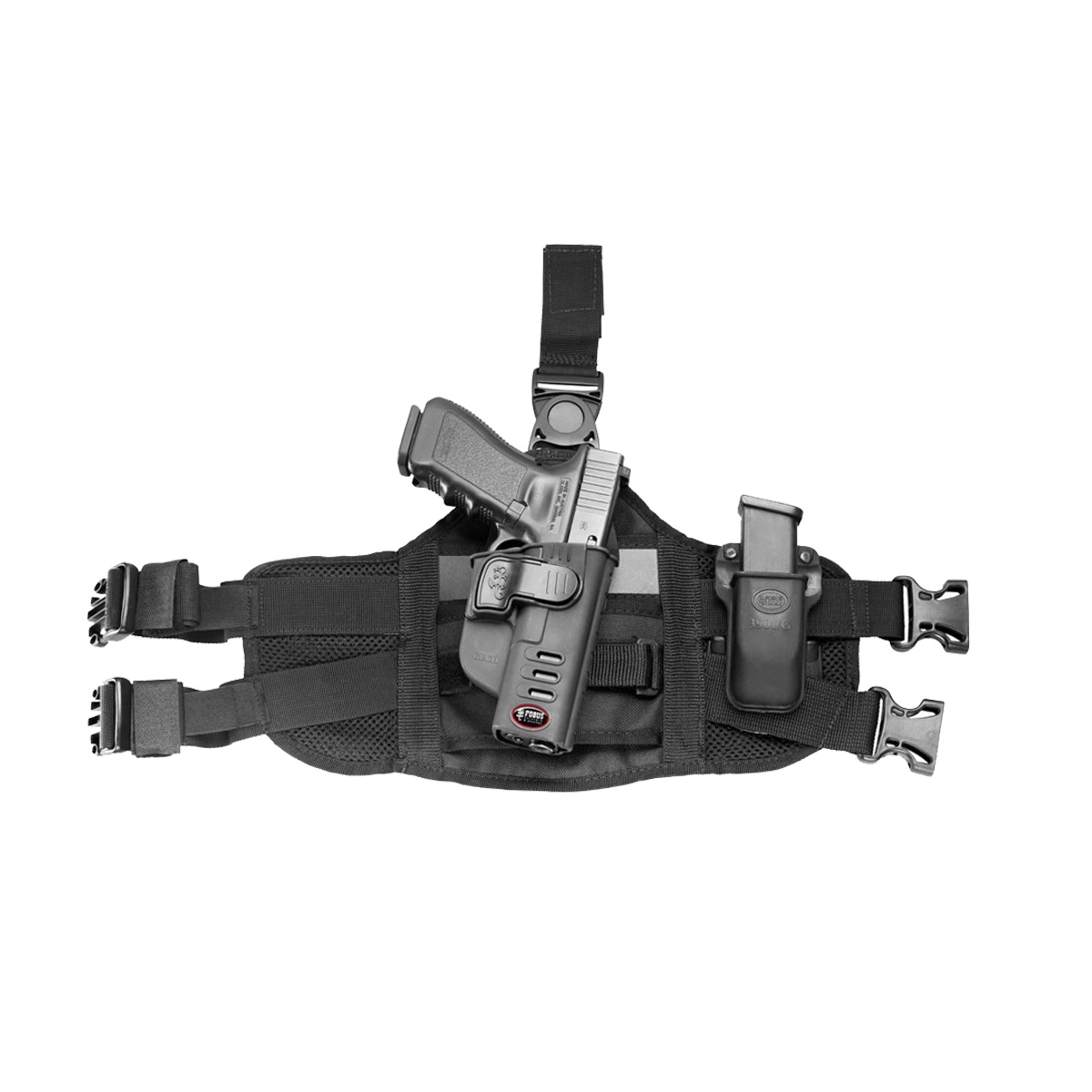 Panel udowy FOBUS EXND 2 - profesjonalny panel udowy izraelskiego producenta Fobus. Służy do zamocowania kabur Fobus w wersji ST (ze stałym kątem) na udzie.