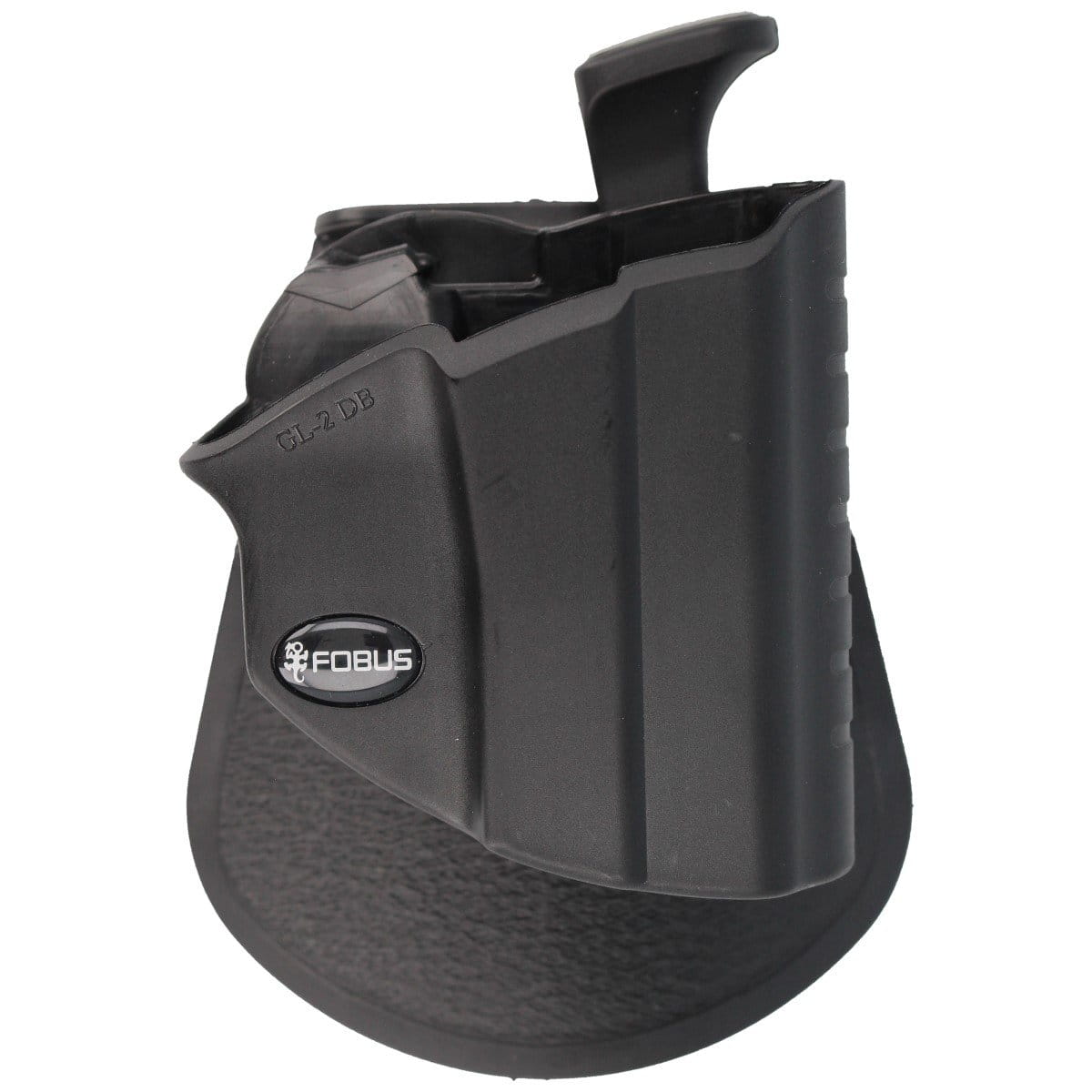 Kabura Fobus GL-2 DB - profesjonalna kabura izraelskiego producenta Fobus przeznaczona do broni Glock 17 19 47 kaliber 9mm (również Gen.6). Kabura posiada zabezpieczenie na przycisk (odbezpieczenie kciukiem)