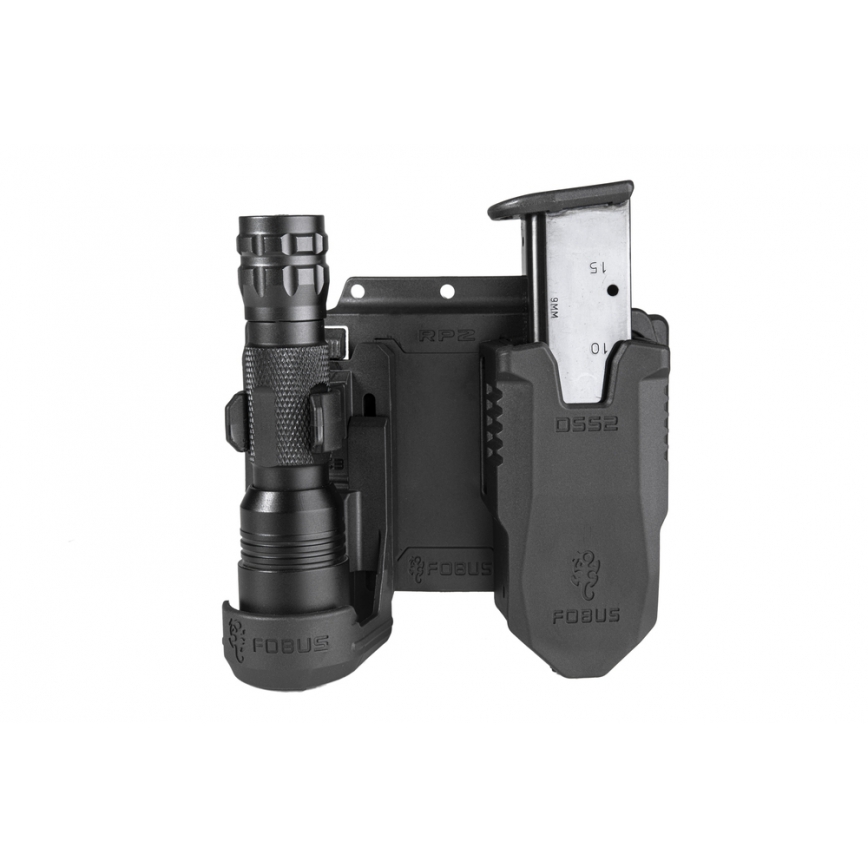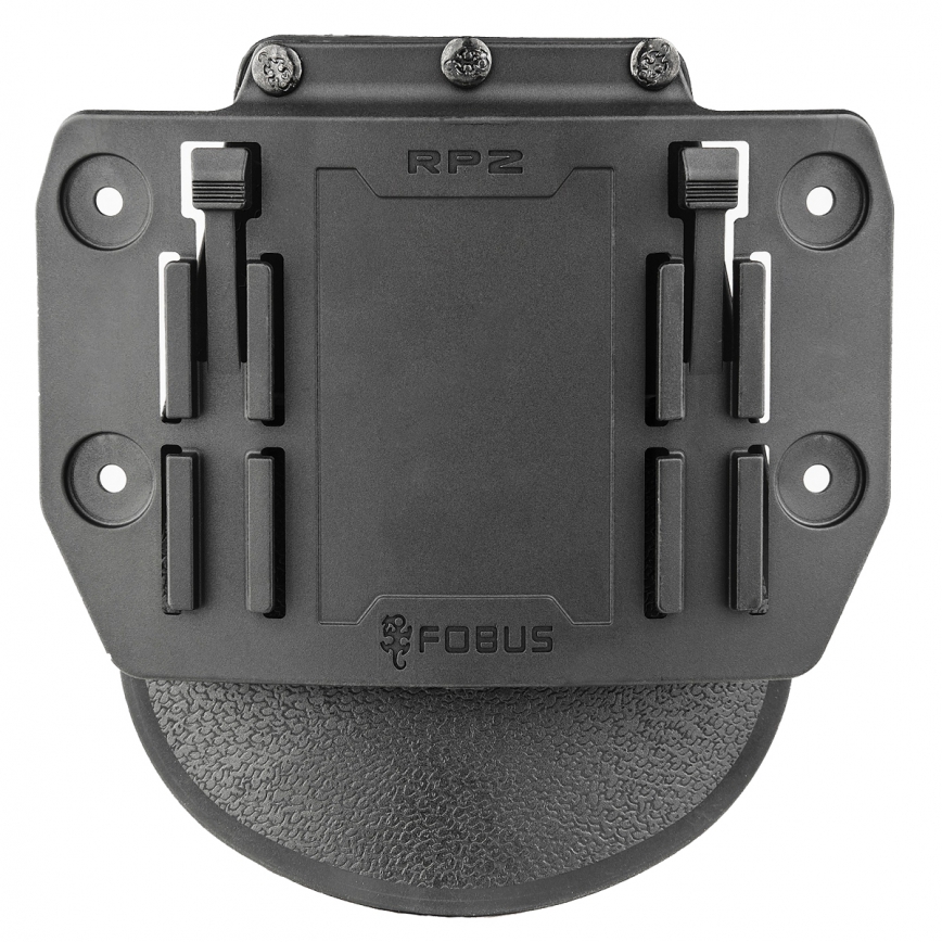 FOBUS RP2 - płetwa mocująca izraelskiego producenta Fobus, za pomocą której można zamontować dwie kabury lub ładownice lub inne uchwyty Fobusa, która posiadają system RAIL. Wykonany metodą wtryskową z lekkiego i bardzo wytrzymałego polimeru.