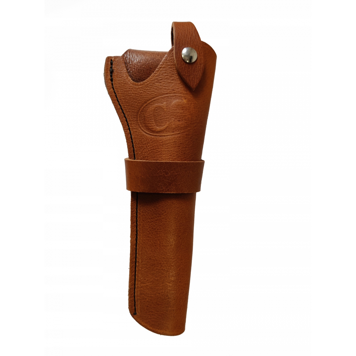 Kabura Mex posiada zapięcie na napę (zatrzask) zapobiegający wypadnięciu rewolweru. Wykonana z grubej, bydlęcej skóry, garbowanej roślinnie. Montowana na pas.