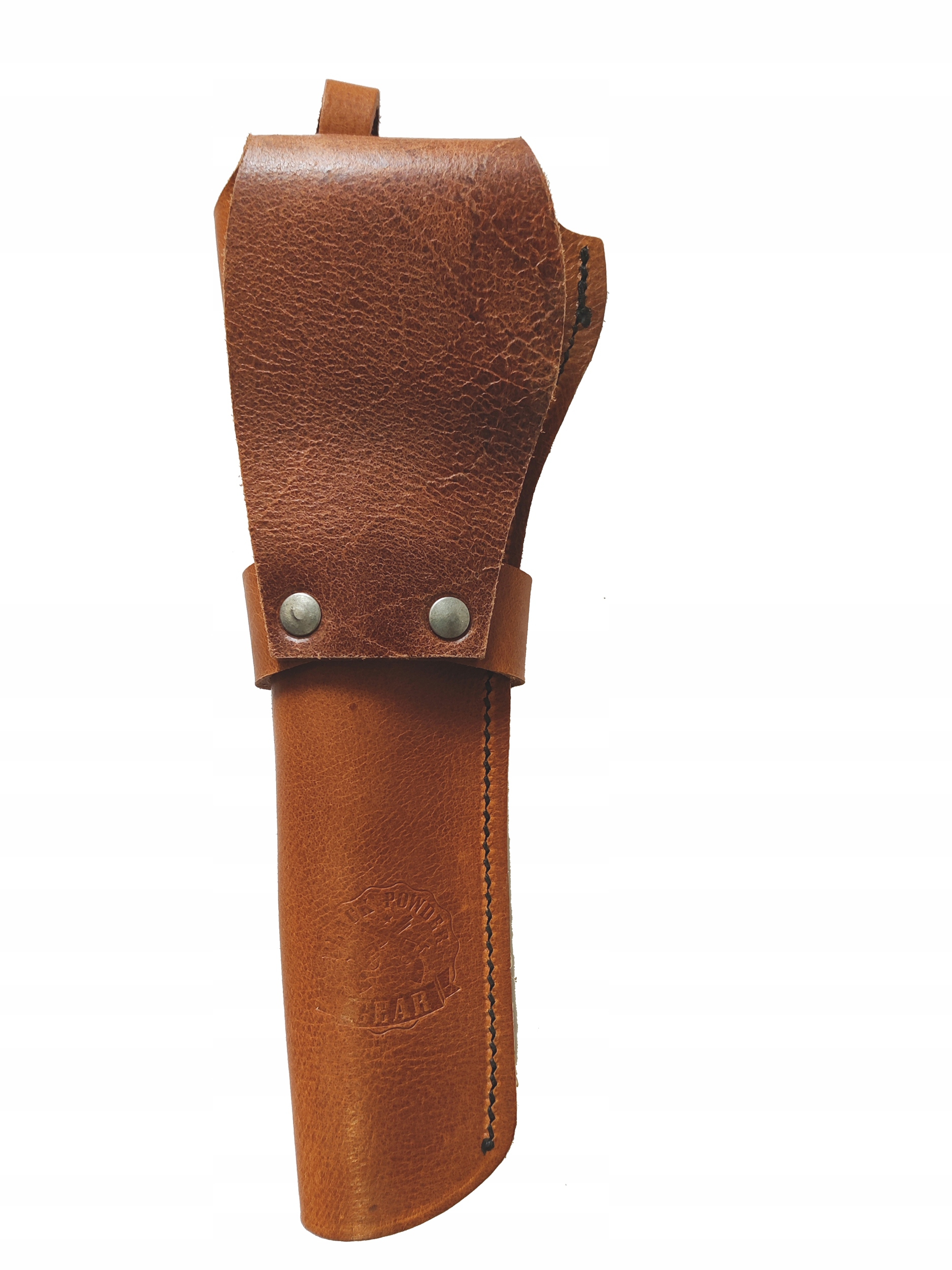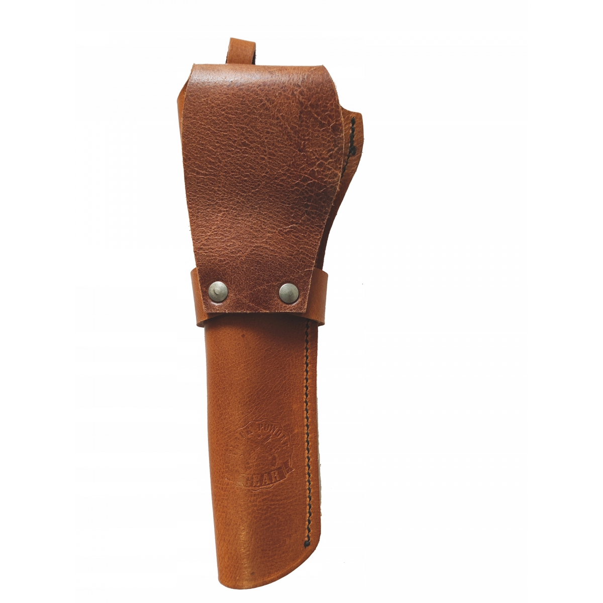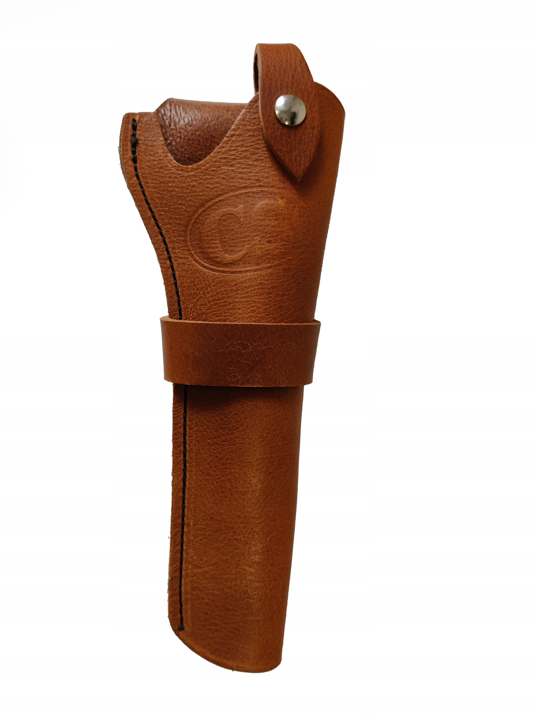 Kabura Black Powder Gear MEX 8 z zapięciem - wysokiej jakości kabura skórzana, przeznaczona do rewolweru czarnoprochowego z lufą 8" (np. Remington 1858, Colt 1860, Navy Peacmaker). Rewolwery z krótszą lufą też można przenosić, z tym, że lufa nie będzie dochodzić do końca kabury.