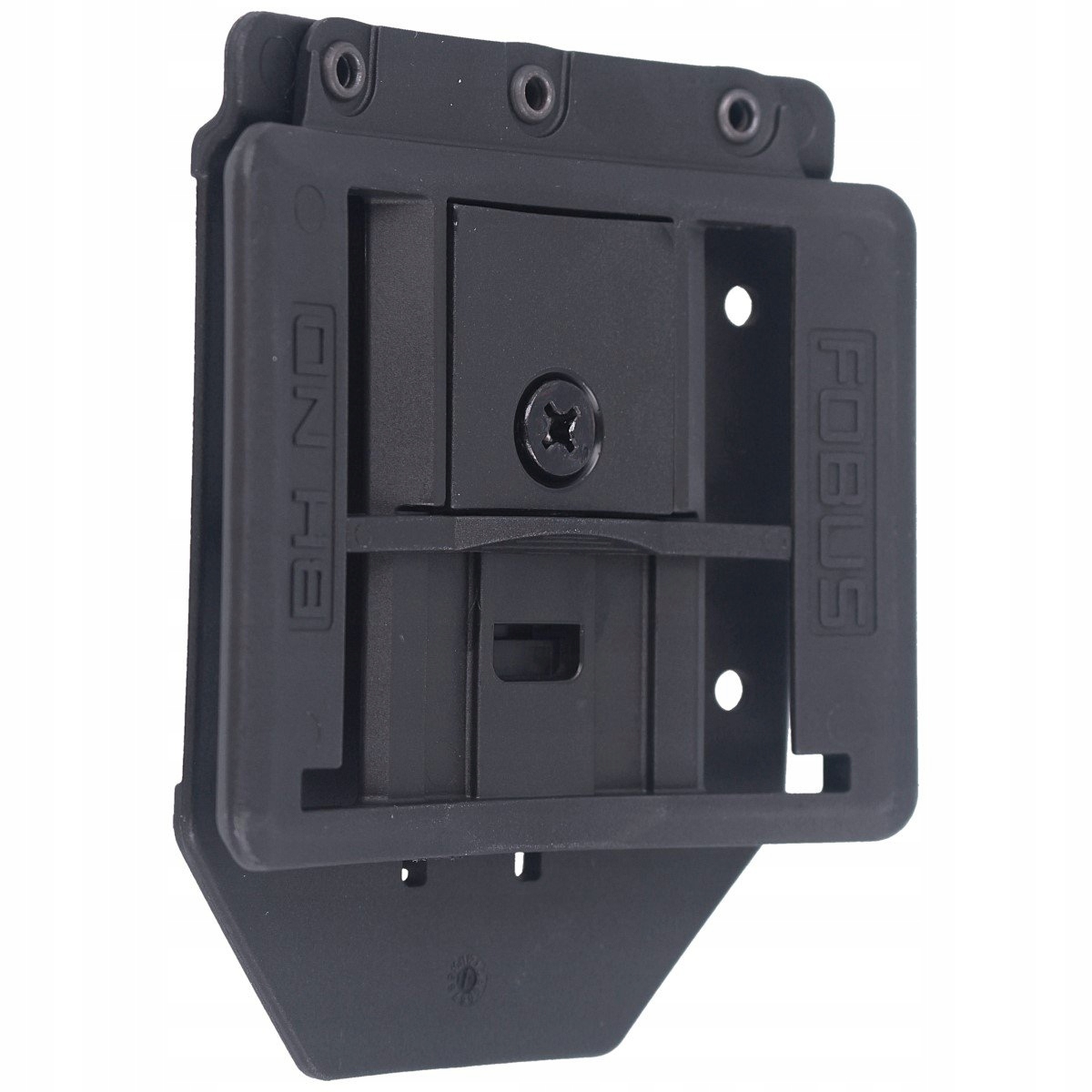 FOBUS RP1 BH ND - płetwa mocująca izraelskiego producenta Fobus, za pomocą której można zamontować na pasie dowolną kaburę lub ładownicę Fobusa, która posiada system RAIL Quick Lock. Wykonany metodą wtryskową z lekkiego i bardzo wytrzymałego polimeru. BH ND - regulowany adapter na pas. Adapter można dopasować do szerokości pasa 33 - 60 mm.