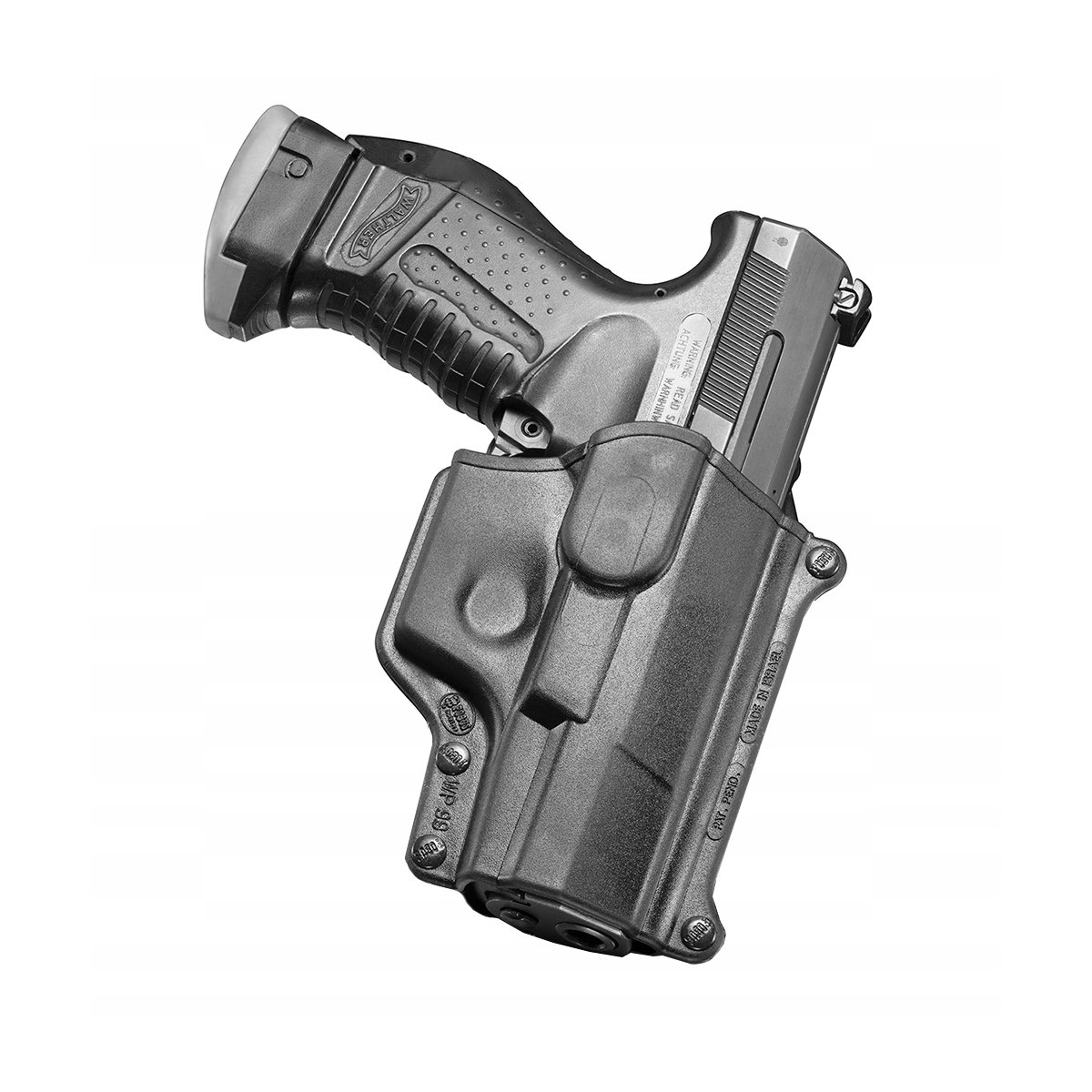 Kabura FOBUS WP99 R - profesjonalna kabura izraelskiego producenta Fobus przeznaczona do Walther P99 kaliber 9mm. Kabury firmy Fobus są technologiczną i stylistyczną rewolucją w tej branży. Wykonane ze specjalnego tworzywa, specjalnie zaprojektowane i wykonane metodą wtryskową nie mogą być skopiowane w skórze, czy w jakimkolwiek innym materiale. Wygodne i trwałe, do codziennego użytku.