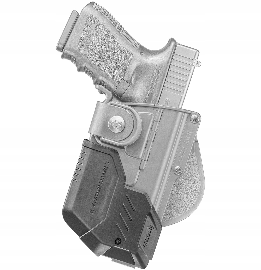 Kabura RBT19 została zaprojektowana do przenoszenia broni wyposażonej w dodatkowe akcesoria, takie jak latarka taktyczna czy celownik laserowy.