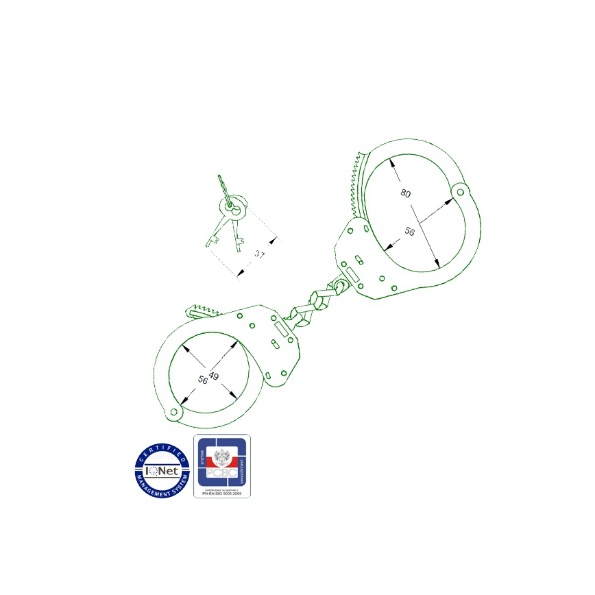 KAJDANKI POLICYJNE KEL-MET - kajdanki metalowe ze stali nierdzewnej to produkt zgodny z najwyższymi standardami norm polskich i europejskich. Zgodnie z normą PN-EN 10088-1 oraz unijną dyrektywą 76/769/EEC-94/27/EEC kajdanki zostały wykonane w całości ze stali nierdzewnej. Nie posiadają one powłok galwanicznych: niklowych lub cynkowych. Stal nierdzewna jest antyalergiczna i bardziej wytrzymała na uszkodzenia.