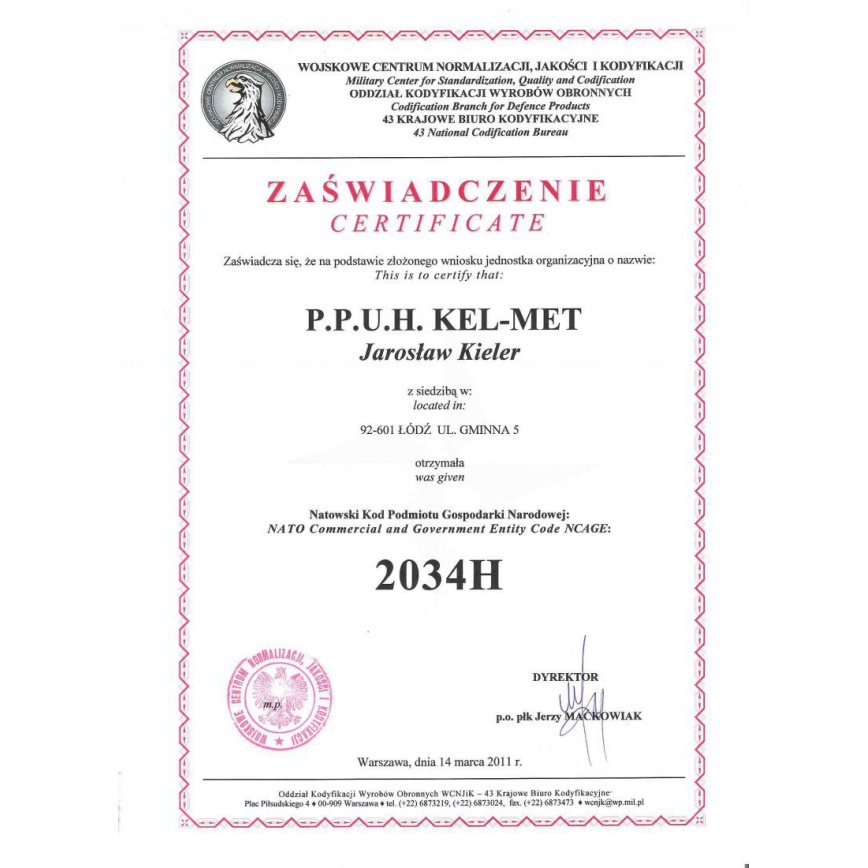 Kajdanki wyróżniają na rynku polskim oraz międzynarodowym szerokie otwory na nadgarstki. Jest to wynikiem zgłoszonego zapotrzebowania przez służby mundurowe w kraju. W 2011 roku Wojskowe Centrum Normalizacji, Jakości i Kodyfikacji nadało NATO'wski Kod Podmiotu Gospodarki Narodowej: NATO Comercial and Goverment Entity Code NCAGE: 2034H. Kajdankom przydzielono Numer Magazynowy NATO - NSN ( NATO Stock Number).