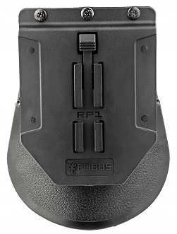 RP1 - płetwa mocująca izraelskiego producenta Fobus, za pomocą której można zamontować dowolną kaburę lub ładownicę, lub inny uchwyt Fobusa, która posiadają system RAIL QuickLock. Wykonany metodą wtryskową z lekkiego i bardzo wytrzymałego polimeru. Płetwa wsuwana za pas lub brzeg spodni, stały kąt.