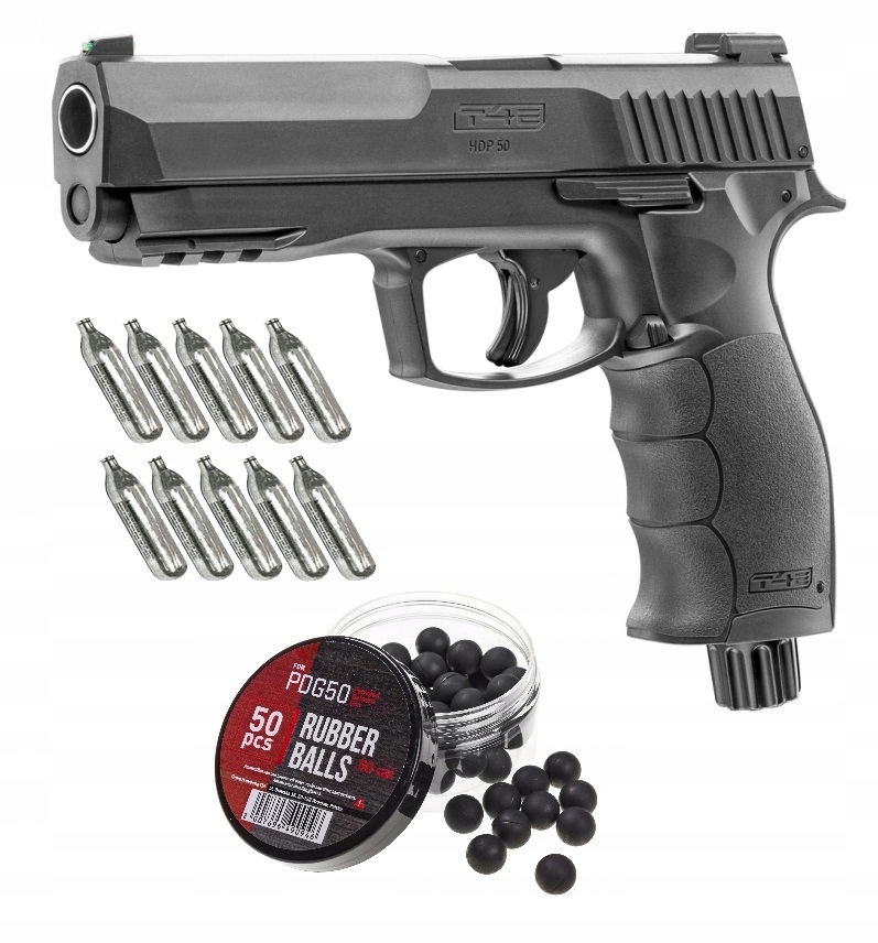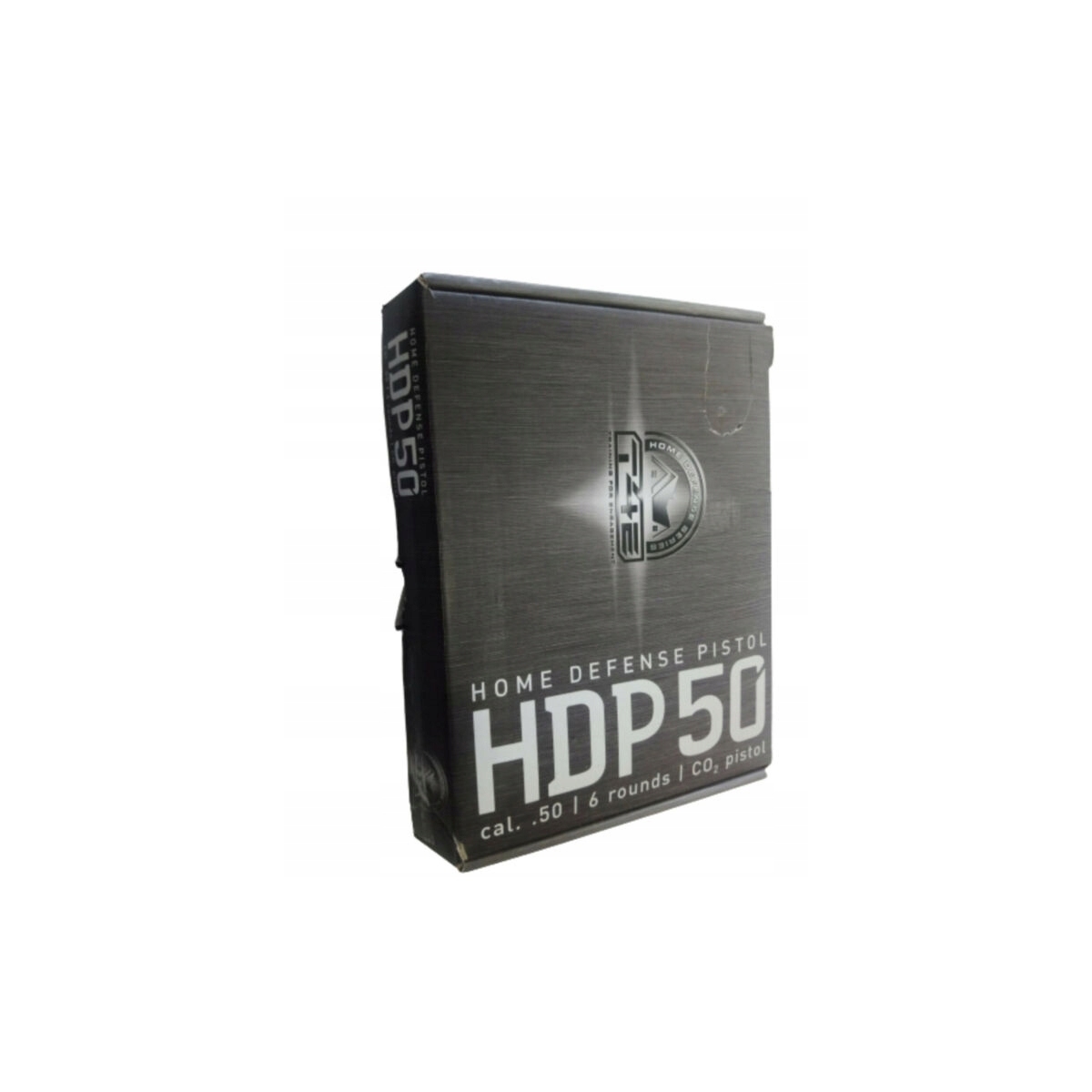 Pistolet HDP kal. 50 - to model służący do samoobrony, treningu czy rekreacji strzelający kulami o kalibrze .50. Wykonany został z mocnego i trwałego tworzywa sztucznego. Zasilany za pomocą kapsuły CO2 12g wkładanej do rękojeści. Przebita zostanie ona dopiero w momencie, kiedy użytkownik uderzy w dolną część nakrętki. Pozwala to na posiadanie ciągle założonej kapsuły CO2 bez ryzyka uszkodzenia zaworu.