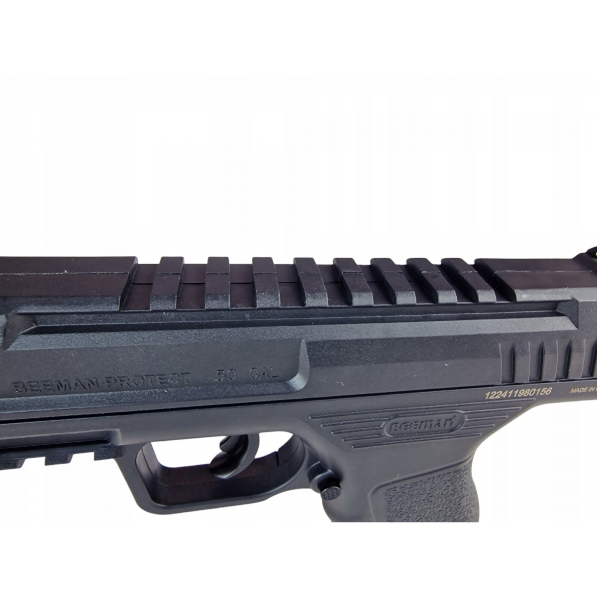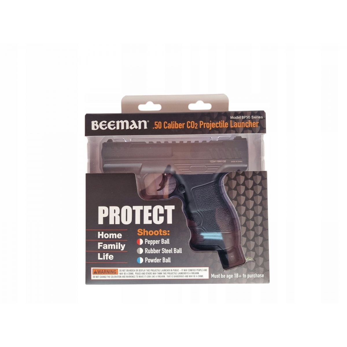 Beeman Protect BP50 Combo to wszechstronny pistolet pneumatyczny zasilany kapsułą CO₂ 12 g, przeznaczony do strzelania kulami gumowymi, pieprzowymi, znakującymi oraz innymi typami amunicji kalibru .50 (12,7 mm). Konstrukcja inspirowana nowoczesnymi pistoletami samopowtarzalnymi łączy realistyczną ergonomię z funkcjonalnością narzędzia do samoobrony, treningu strzeleckiego oraz rekreacyjnego użytkowania. Model dostępny jest dla osób pełnoletnich bez konieczności posiadania pozwolenia ani rejestracji.
