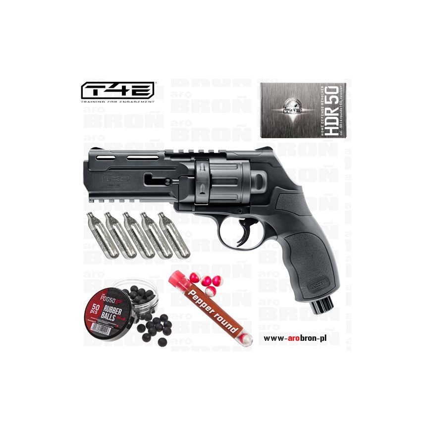 Rewolwer RAM Combat HDR 50 11J T4E 2.4758 - zestaw: 5x CO2, 50 szt. kul gumowych, 7 szt. kul pieprzowych