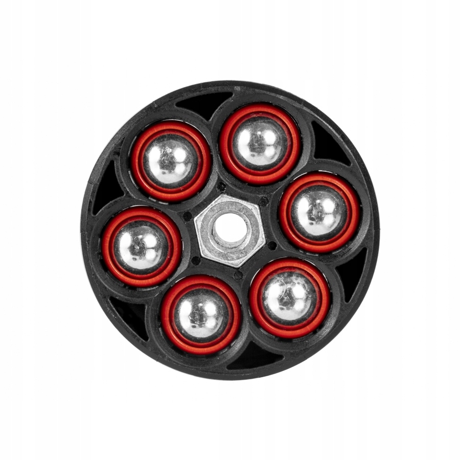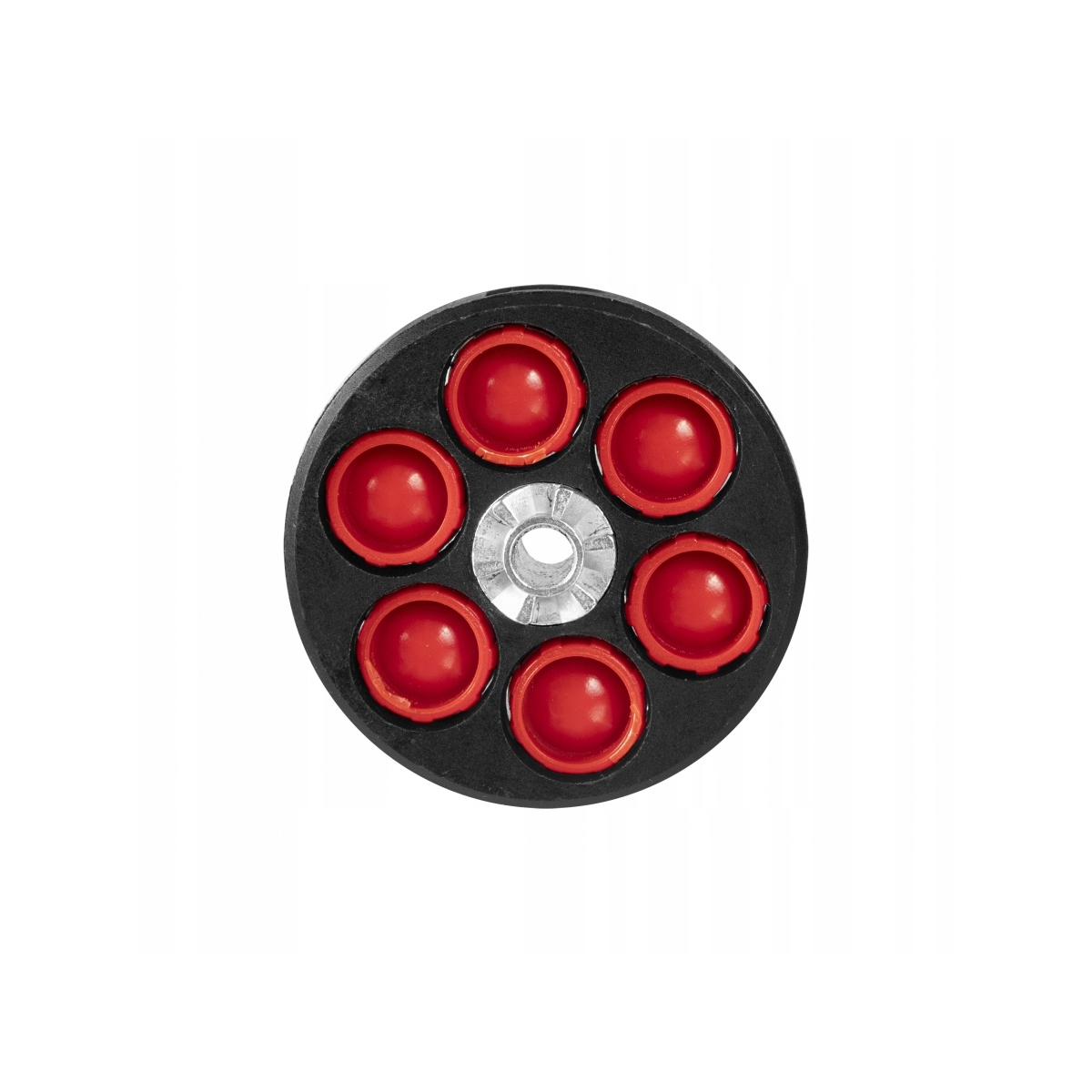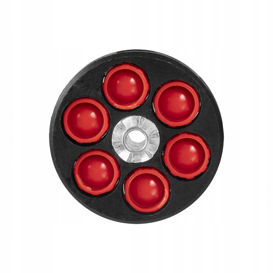 - Kapsuła po założeniu zostanie przebity dopiero w momencie, kiedy użytkownik uderzy w dolną część nakrętki. Pozwala to na posiadania ciągle gotowego rewolweru bez ryzyka uszkodzenia zaworu.