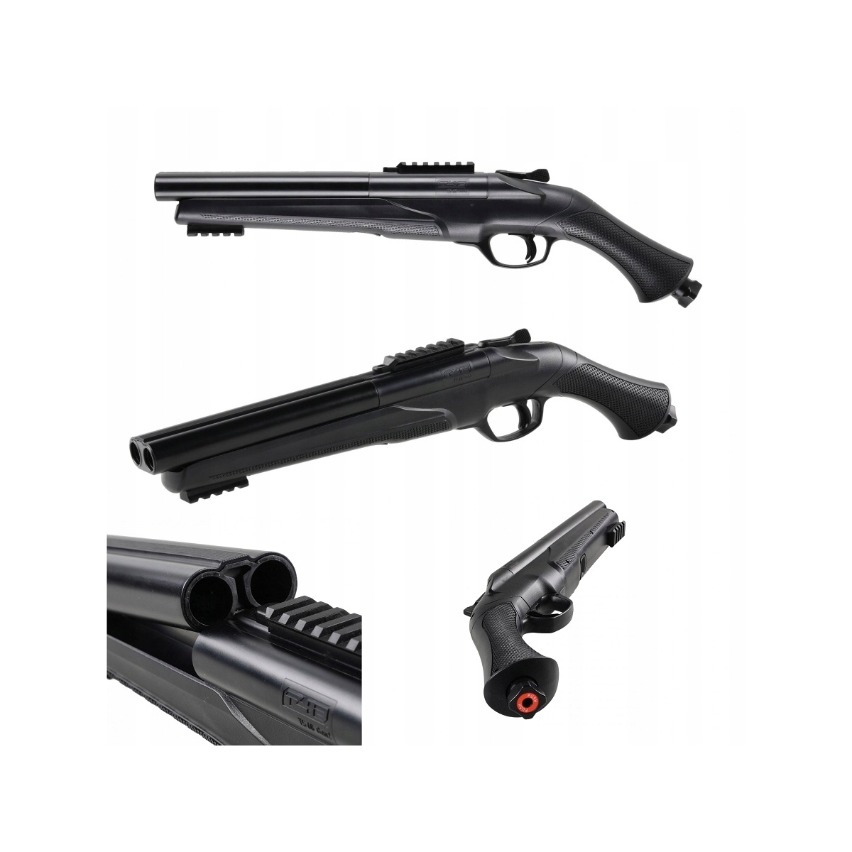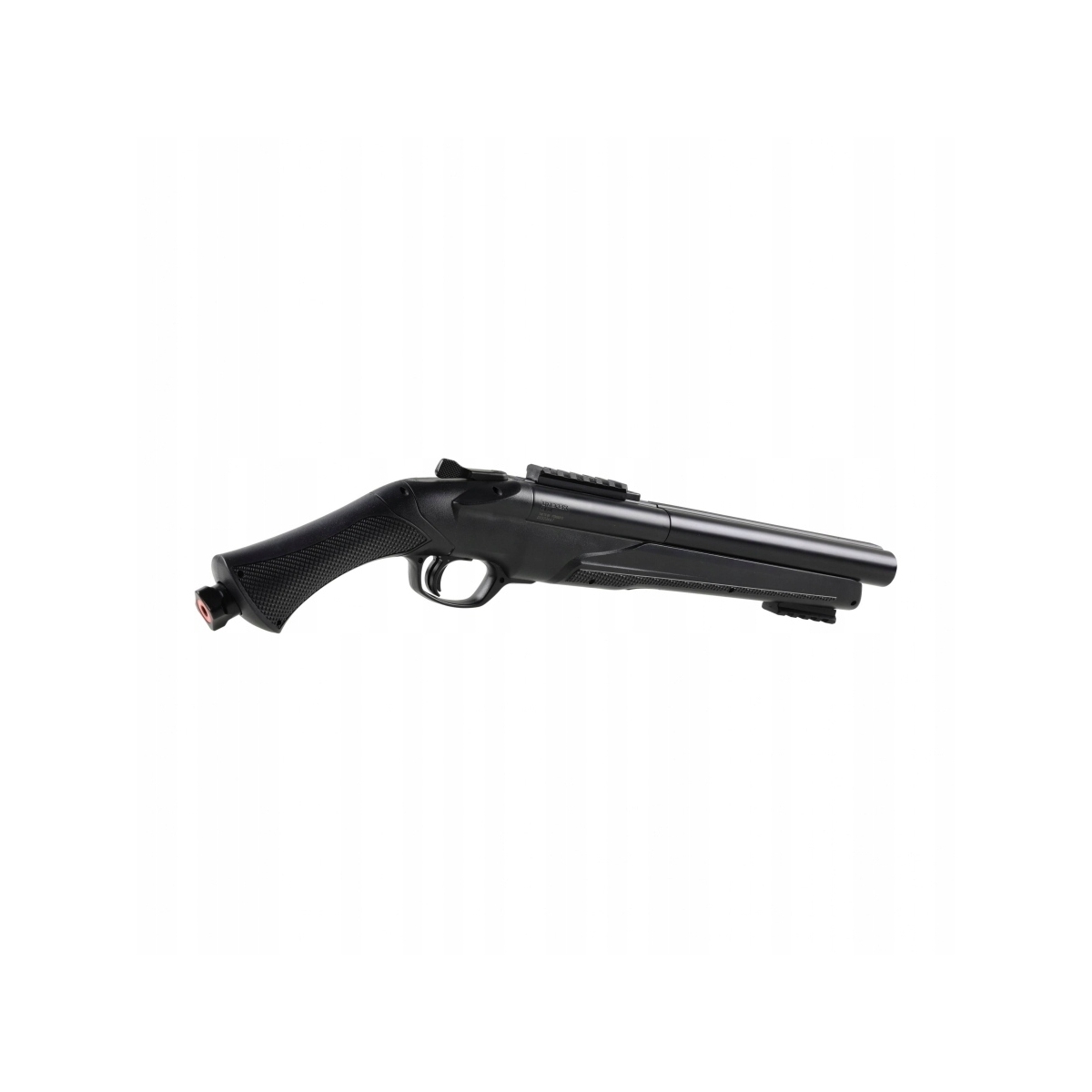- Funkcje dodatkowe: przycisk otwierający lufy i szyna Picatinny do montażu akcesoriów, takich jak latarki czy laserowego znacznika celu.