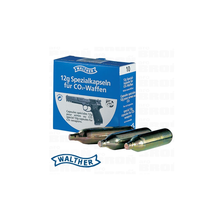 Wysokiej jakości nabój CO2 12g firmy Walther. Naboje z dwutlenkiem węgla zasilają pistolety i karabinki. Sprężony pod ciśnieniem dwutlenek węgla jest odpowiednio dawkowany przez zawór w wiatrówce następnie wystrzeliwuje śrut lub kulkę.