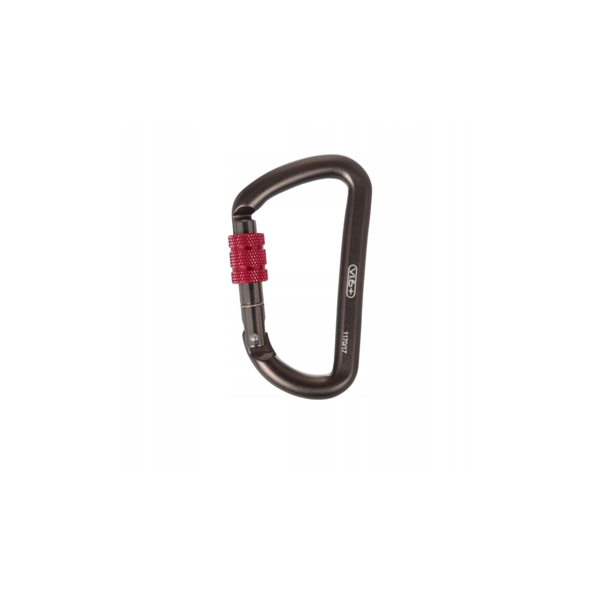 Karabińczyk Zakręcany VI.6+ GEAR - to kompaktowy i lekki karabinek z zakręcaną blokadą zamka marki VI.6+, który Może on służyć do mocowania worków transportowych, lonży do czekanów lub do zawieszenia butów podejściowych przy uprzęży. Może być również doskonałym uzupełnieniem sprzętu biwakowego i służyć do rozwieszenia hamaku. Wykonany został z lekkiego aluminium. Ma on konstrukcję o profilu D z zamkiem Key-lock oraz zakręcany pierścień, który zapobiega przypadkowemu otwarciu się zamka. Posiada dobrą wytrzymałość podłużną równą sile 11 kN.