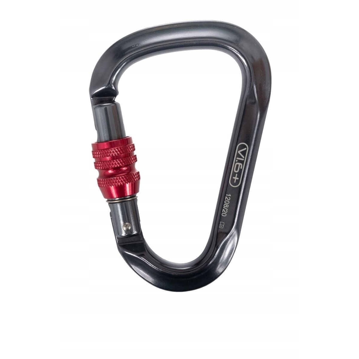 Karabińczyk Karabinek VI.6+ HMS SAFE - to kompaktowy i lekki karabinek marki VI.6+, który może służyć do mocowania worków transportowych, lonży do czekanów lub do zawieszenia butów podejściowych przy uprzęży. Może być również doskonałym uzupełnieniem sprzętu biwakowego i służyć do rozwieszenia hamaku. Wykonany został z lekkiego aluminium. Ma on konstrukcję o profilu D z zamkiem Key-lock oraz zakręcany pierścień, który zapobiega przypadkowemu otwarciu się zamka.