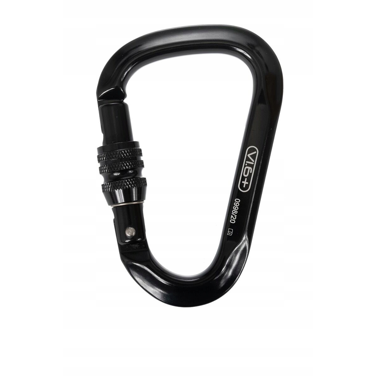Karabińczyk Karabinek VI.6+ HMS SAFE - to kompaktowy i lekki karabinek marki VI.6+, który może służyć do mocowania worków transportowych, lonży do czekanów lub do zawieszenia butów podejściowych przy uprzęży. Może być również doskonałym uzupełnieniem sprzętu biwakowego i służyć do rozwieszenia hamaku. Wykonany został z lekkiego aluminium. Ma on konstrukcję o profilu D z zamkiem Key-lock oraz zakręcany pierścień, który zapobiega przypadkowemu otwarciu się zamka.