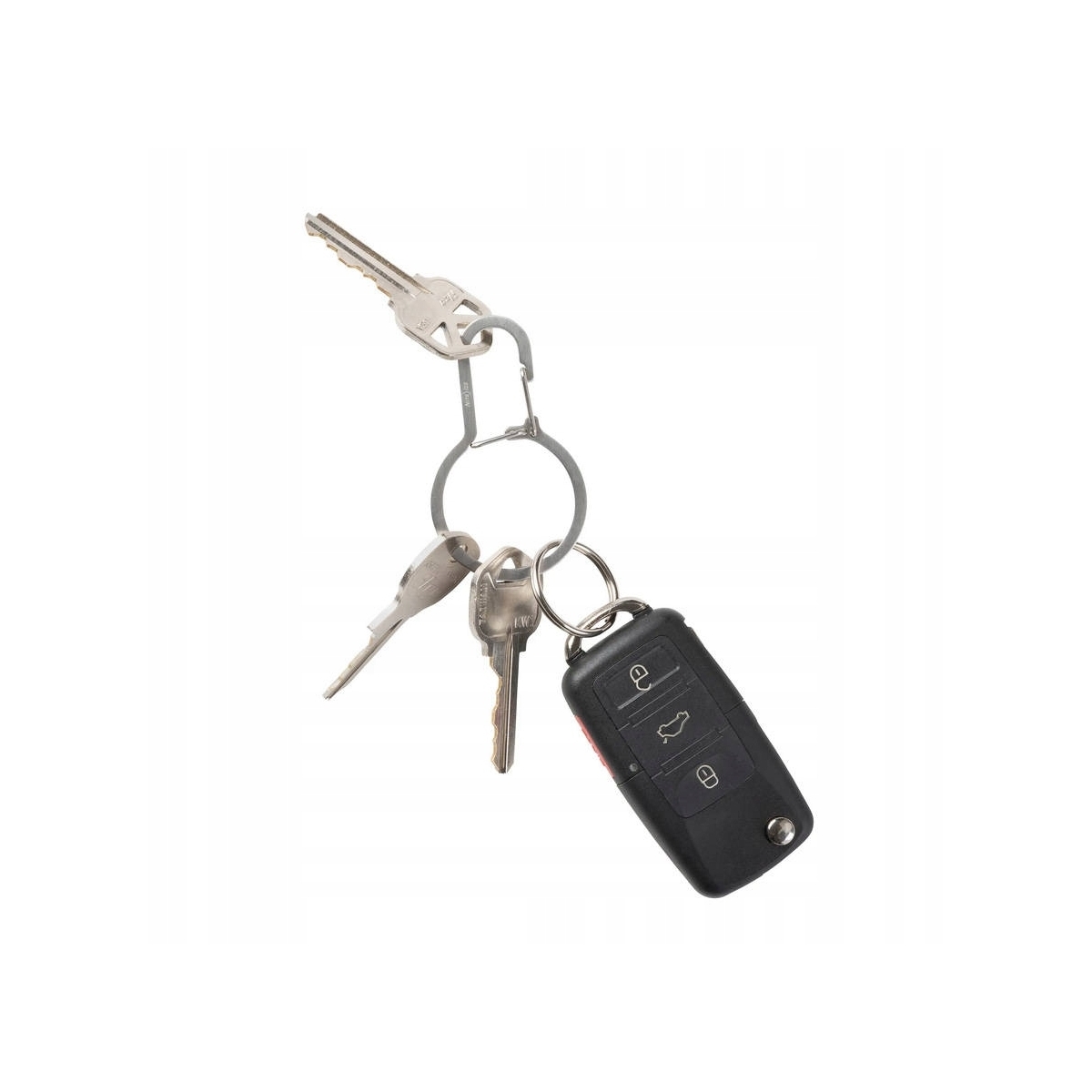 - Karabińczyk z funkcją dwukomorowego breloka do kluczy.