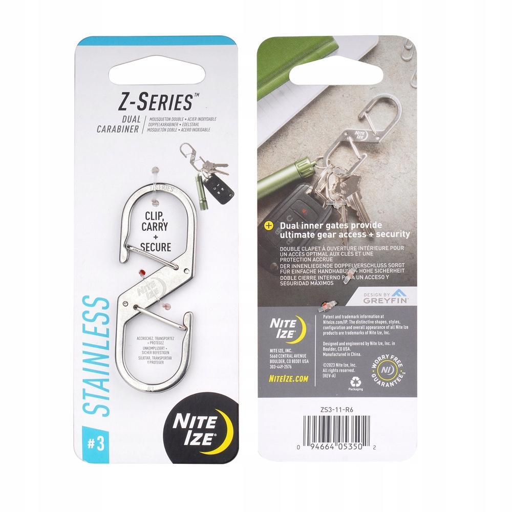 Nite Ize Z-Series to uniwersalne narzędzie z podwójną blokadą wykonane ze stali nierdzewnej. Karabińczyk umożliwia przypiecię z jednej strony kluczy lub innych akcesoriów, podczas gdy drugą stronę można przymocować do szlufek spodni.