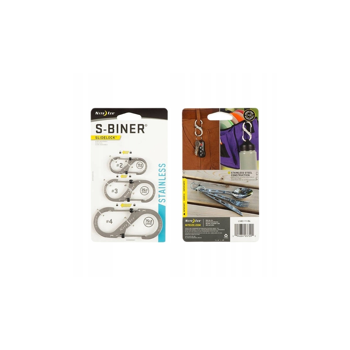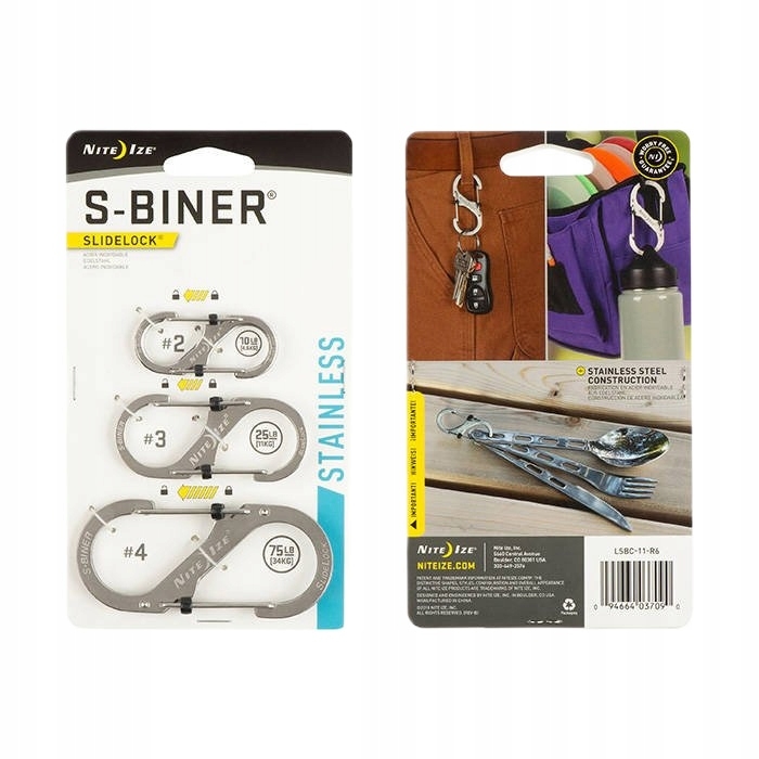 Karabińczyk Nite Ize S-Biner #2 #3 #4 STAINLESS srebrny LSBC-11-R6 - to uniwersalne narzędzie wykonane ze stali nierdzewnej. Służy do przytroczenia dowolnego sprzętu do ekwipunku. Sprawdza się również do łączenia lin, sznurów od moskitier czy prania, ale także jako element montażowy do mocowania pałatek. Obustronne zapięcie pozwala na szybkie i łatwe mocowanie.
