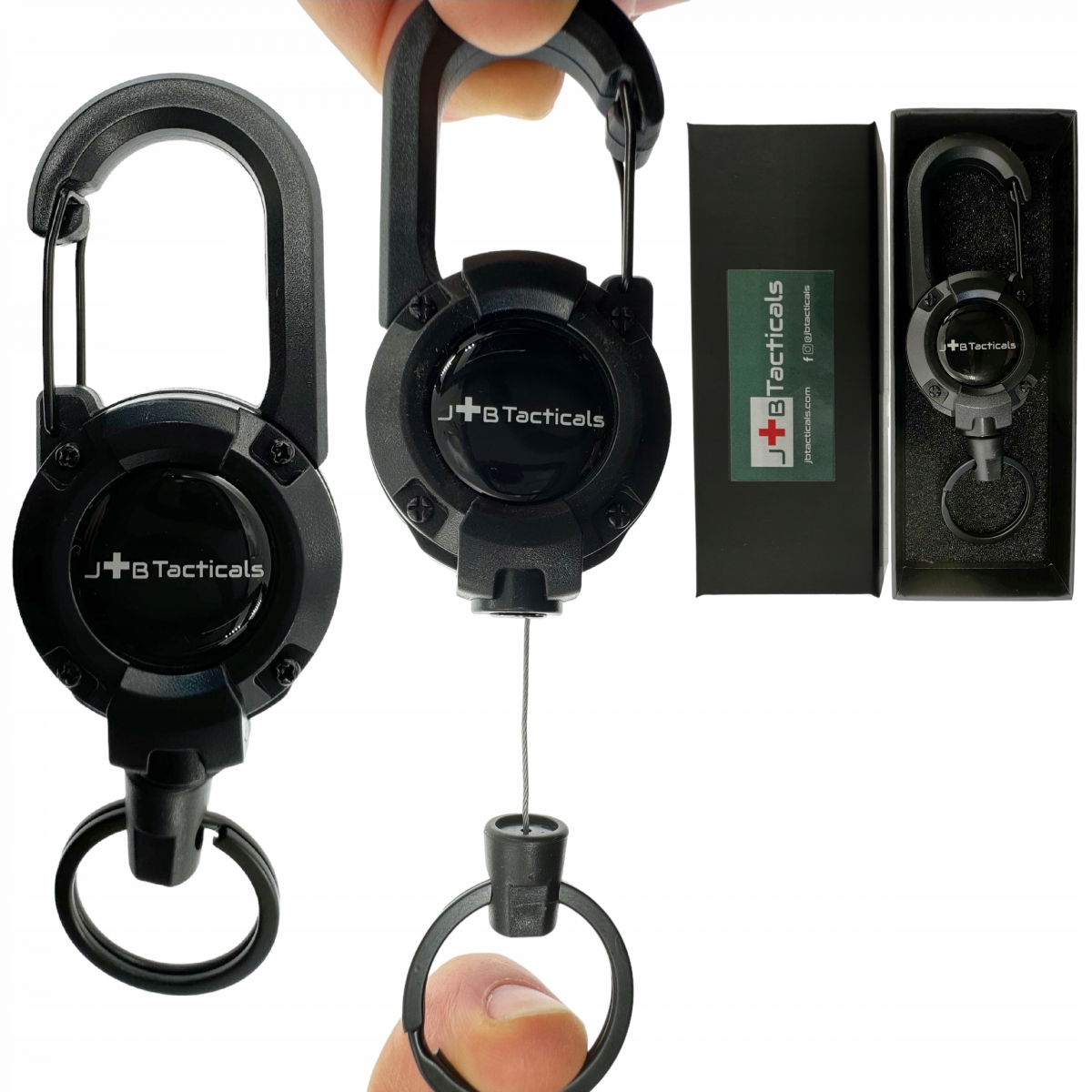 ⭐Doskonale widoczne logo producenta umieszczone jest na obu stronach retraktora, co dodaje mu profesjonalnego wyglądu oraz potwierdza wysoką jakość i markę JB Tacticals.