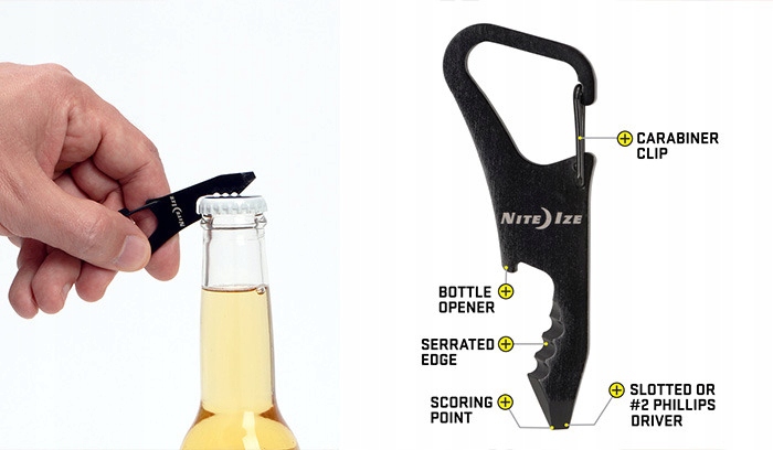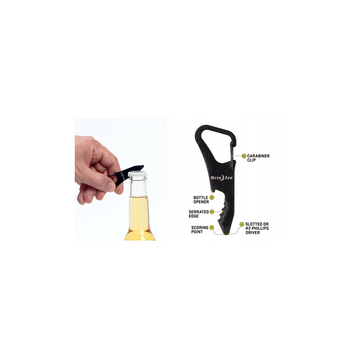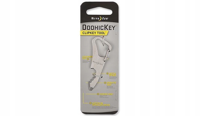 Nite Ize DoohicKey ClipKey - to uniwersalne narzędzie wykonane ze stali nierdzewnej. To microtool z karabińczykiem, który można łatwo przytwierdzić do szlufki lub ekwipunku. Zawiera otwieracz do butelek, ząbkowane ostrze i mały śrubokręt Philips #2.