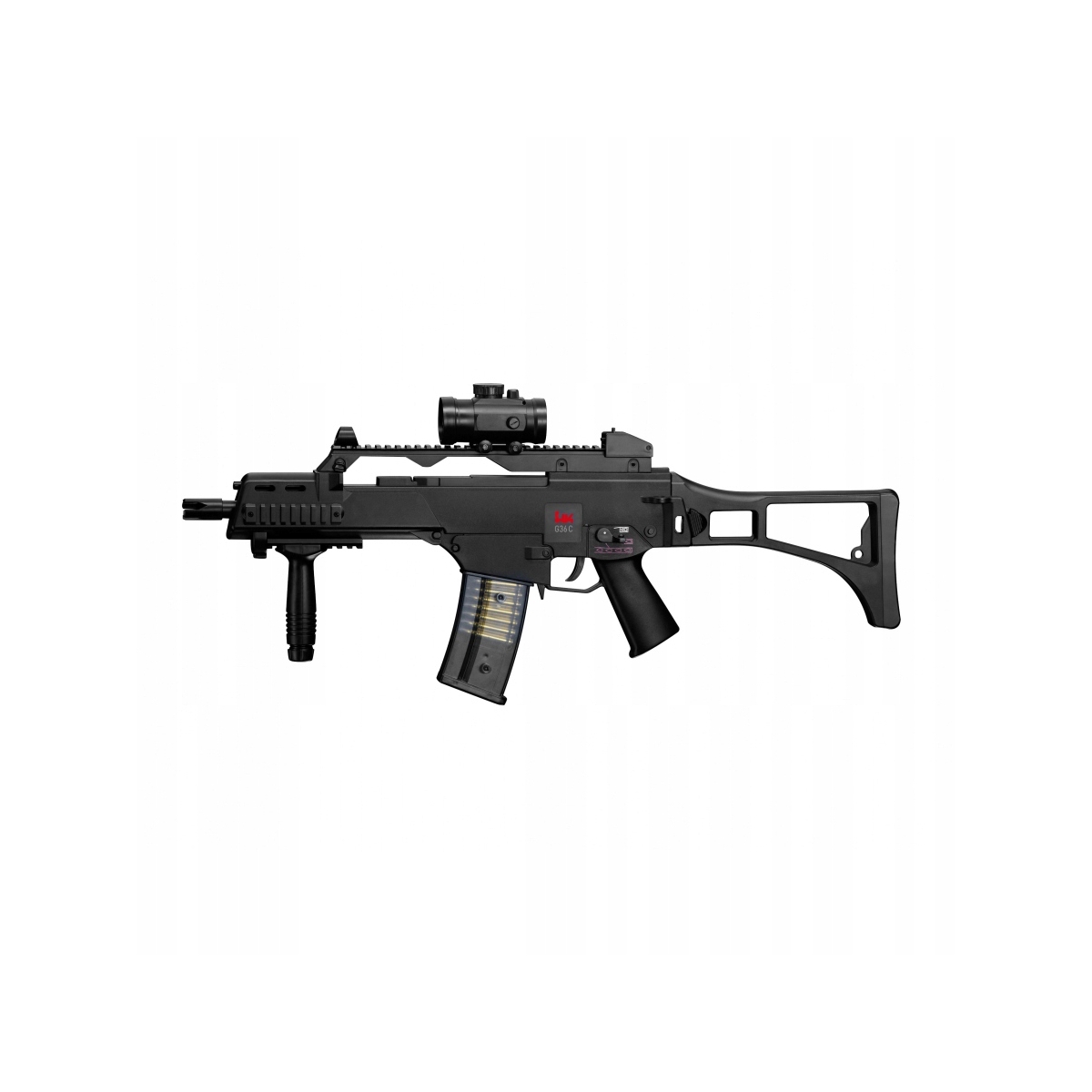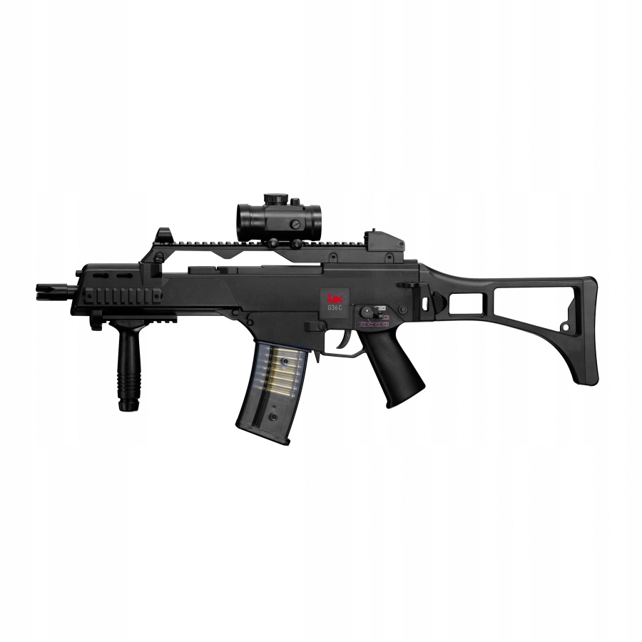 Heckler & Koch G36 C to elektryczna replika asg niemieckiego karabinka szturmowego przeznaczona dla początkujących graczy, wyposażona m.in w celownik kolimatorowy, chwyt przedni oraz atrapę tłumika dźwięku.
