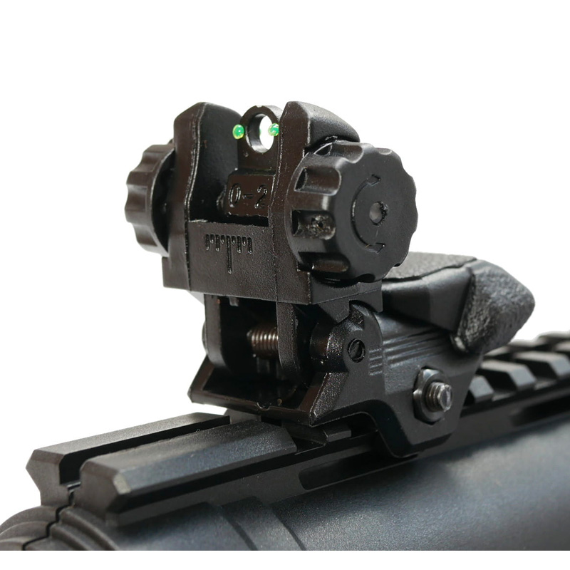 - Przyrządy celownicze: Tak, składane, polimerowe, ze światłowodami