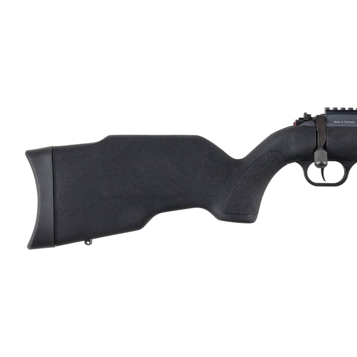 Ergonomiczna osada Thumbhole: Polimerowa kolba w kolorze czarnym posiada chwyt pistoletowy typu Thumbhole (z otworem na kciuk). Zapewnia to niezwykle stabilny, naturalny i powtarzalny chwyt, co bezpośrednio przekłada się na celność. Kolba jest odporna na warunki atmosferyczne, pęknięcia i zarysowania.