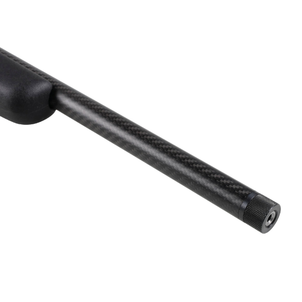 Lufa w oplocie z włókna węglowego (Carbon Barrel): Najbardziej charakterystyczny element broni. Precyzyjna lufa o długości 485 mm została umieszczona w płaszczu z włókna węglowego (carbon). Takie rozwiązanie nie tylko nadaje broni agresywnego, nowoczesnego wyglądu, ale przede wszystkim zwiększa sztywność lufy, poprawia jej chłodzenie i drastycznie redukuje masę całkowitą karabinka.