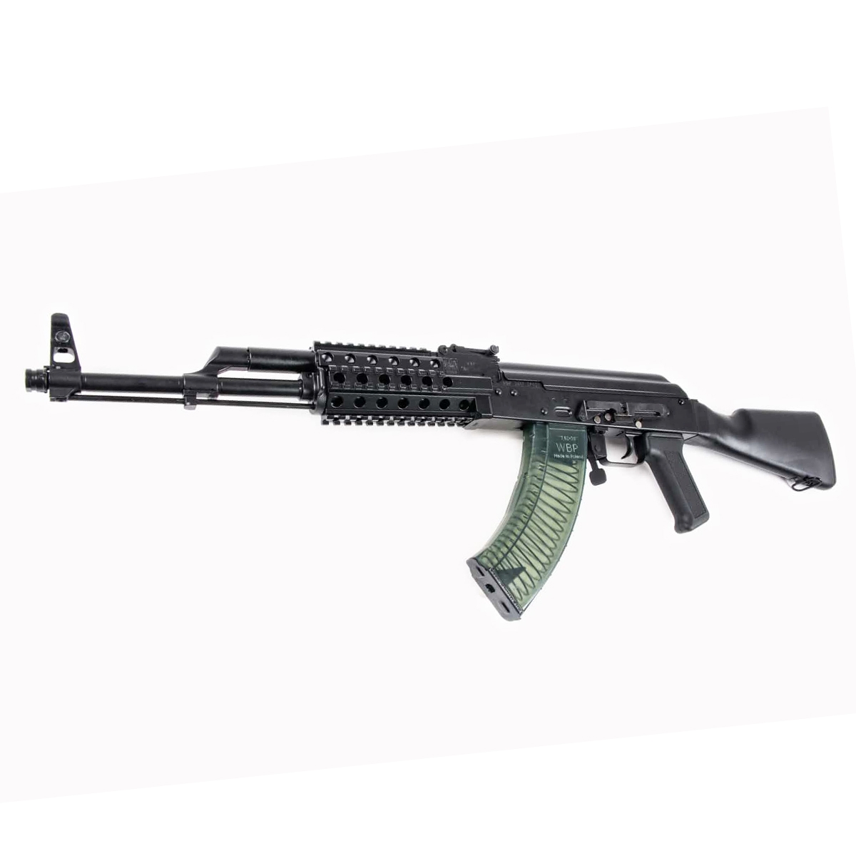 Karabin AKM WBP Jack 7,62x39 mm w wersji z rurą gazową zintegrowaną z szyną Picatinny oraz łożem typu Picatinny. W standardzie model ten jest wyposażony w duży przełącznik ognia z powiększoną półką pod palec i powiększony zatrzask magazynka. W komplecie znajduje się przedni chwyt montowany na łożu. Model z bieżącej produkcji. Karabin jest wyposażony we frezowaną szynę boczną, pozwalającą na montaż optyki.