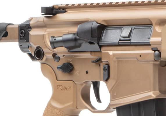 Nowy Sig MCX Spear-LT ma lżejsze łoże przednie, ze dwiema śrubami mocującymi dla osiągnięcia dodatkowej sztywności i lżejszą lufę o zwiększonej dokładności. Dla większej ergonomii strzelców zarówno prawo jak i lewo ręcznych, wszystkie jego manipulatory są obustronne, począwszy od dźwigni przeładowania, przez bezpiecznik i zrzut zamka, na zrzucie magazynka kończąc.