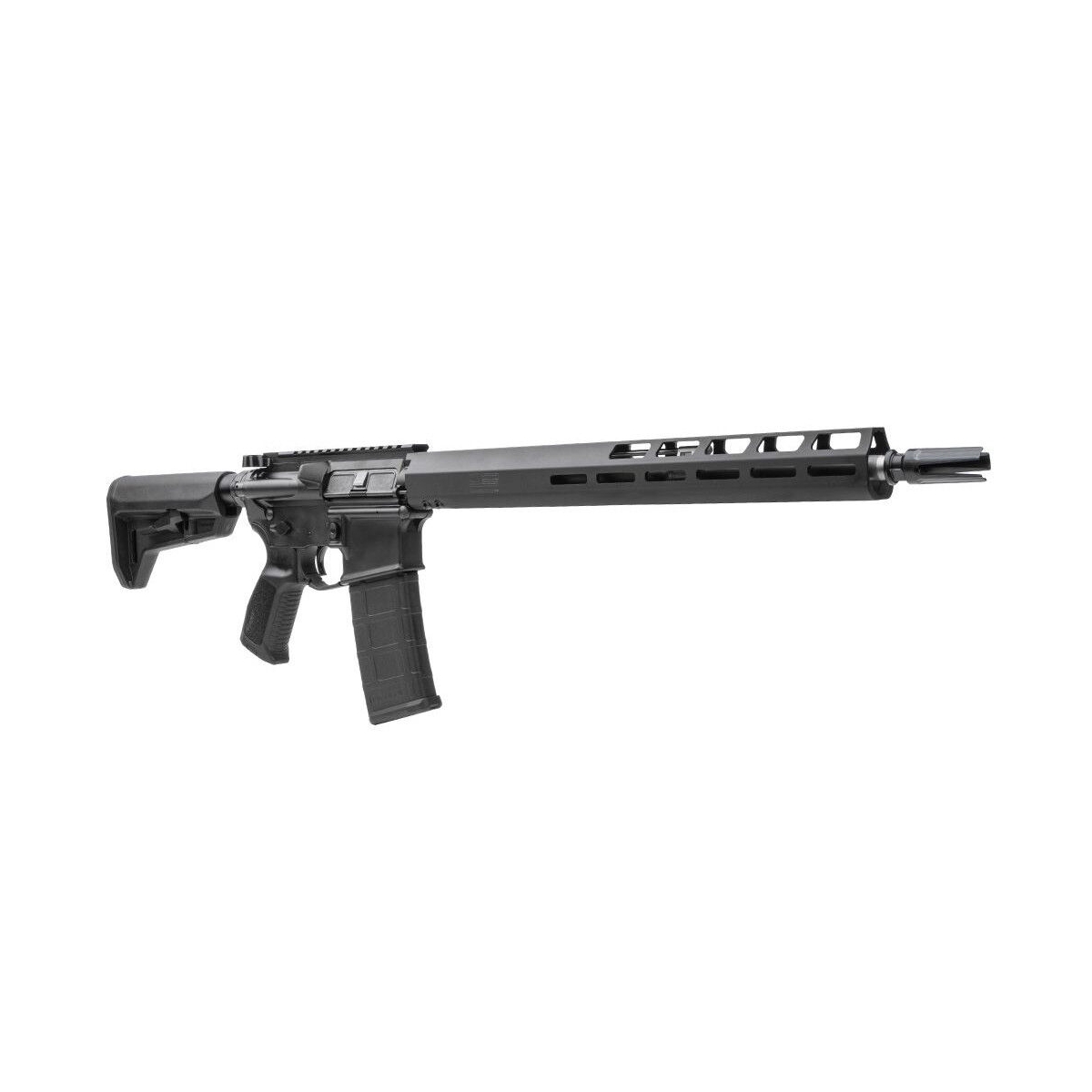 Bez problemu możemy również zamocować na broni przyrządy mechaniczne, czy to jako podstawowe (np. ze względu na wymogi konkurencji, w której będziemy startować) czy też jako zapasowe (BUIS - BackUp Iron Sights) proste lub skośne, offsetowe. Co prawda przednie łoże standardowo nie ma szyn akcesoryjnych, posiada jednak system montażu M-Lok, dzięki któremu bez problemu zainstalujemy dowolne, niezbędne nam dodatki. Np. chwyt skośny, czy też blokadę nad-stop.