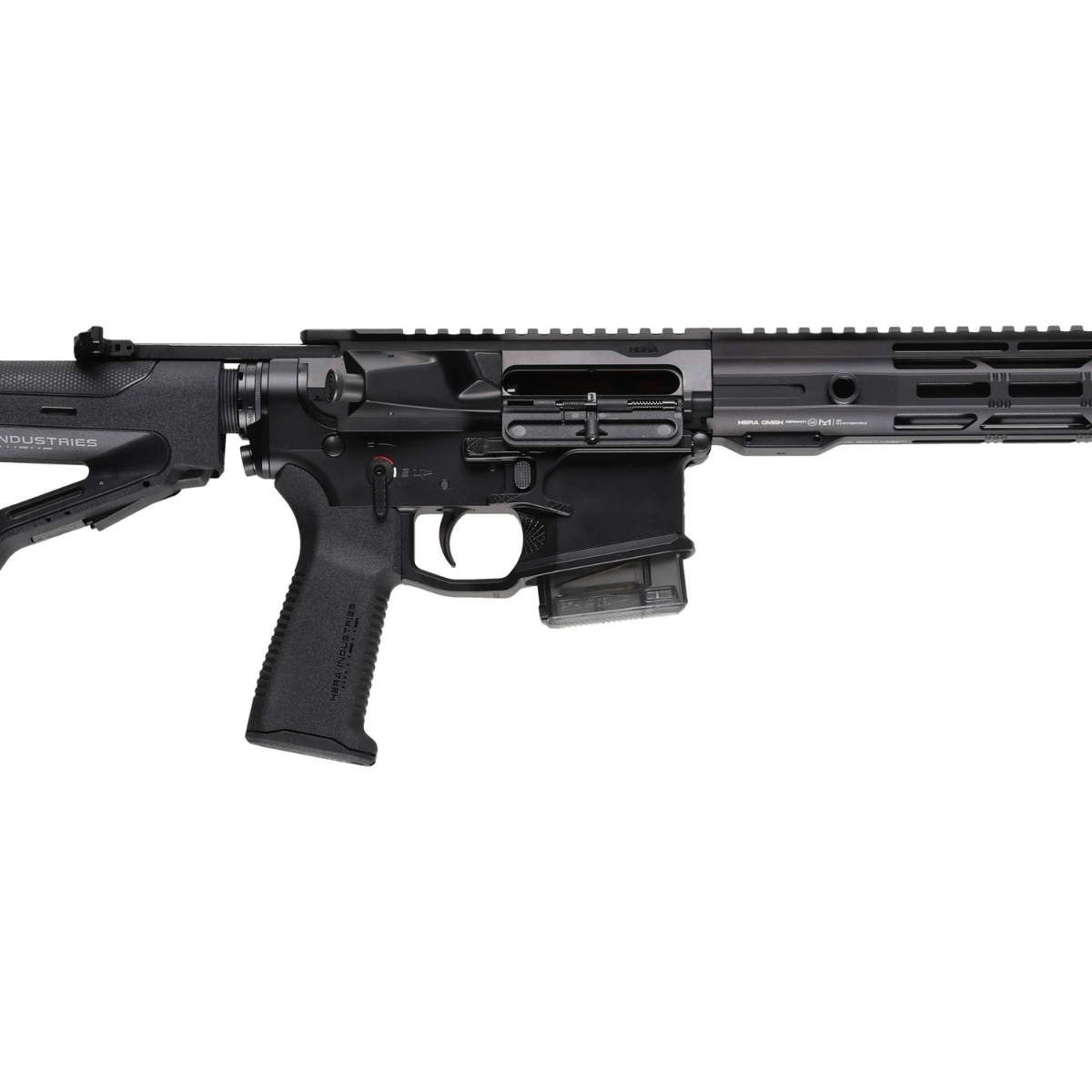 W przeciwieństwie do wielu seryjnych konstrukcji, Hera Arms kładzie ogromny nacisk na jakość materiałów. Upper i Lower receiver są precyzyjnie wycinane metodą CNC z kutego aluminium 7075-T6, co zapewnia sztywność i trwałość konstrukcji. Dodatkowo karabinek jest wyposażony w autorskie akcesoria Hera Arms, które cieszą się uznaniem na całym świecie ze względu na swoją ergonomię i futurystyczny wygląd.