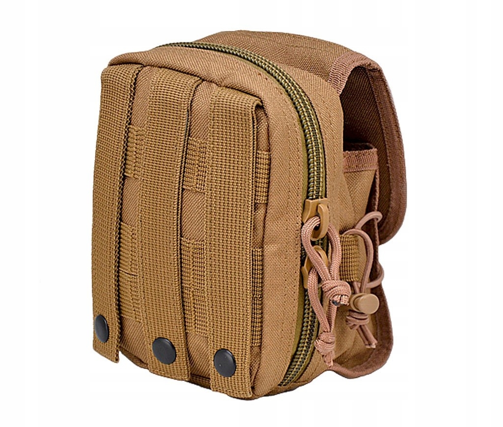 Główna kieszeń zamykana na dwubiegunowy zamek. Przednia kieszeń zamykana klapą na rzep i klamrę. Z przodu znajdziemy panel Velcro do personalizacji kieszeni/saszetki. Kieszeń jest kompatybilna z PALS/MOLLE/szelkami plecaka.