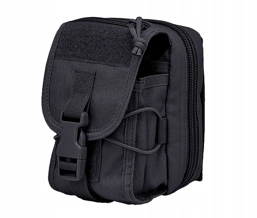 Główna kieszeń zamykana na dwubiegunowy zamek. Przednia kieszeń zamykana klapą na rzep i klamrę. Z przodu znajdziemy panel Velcro do personalizacji kieszeni/saszetki. Kieszeń jest kompatybilna z PALS/MOLLE/szelkami plecaka.