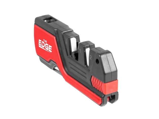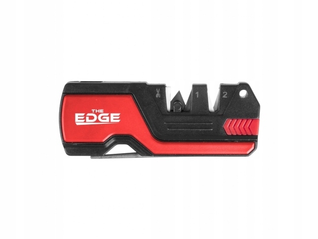 Ostrzałka THE EDGE bushSHARP czerwona + krzesiwo - do noży gładkich i ząbkowanych, nożyczek, haczyków wędkarskich oraz noży myśliwskich. Wyposażona w gwizdek alarmowy, krzesiwo oraz osełkę do nożyczek. Ma lekką polimerową konstrukcję oraz otwór na linkę lub kółko do kluczy.