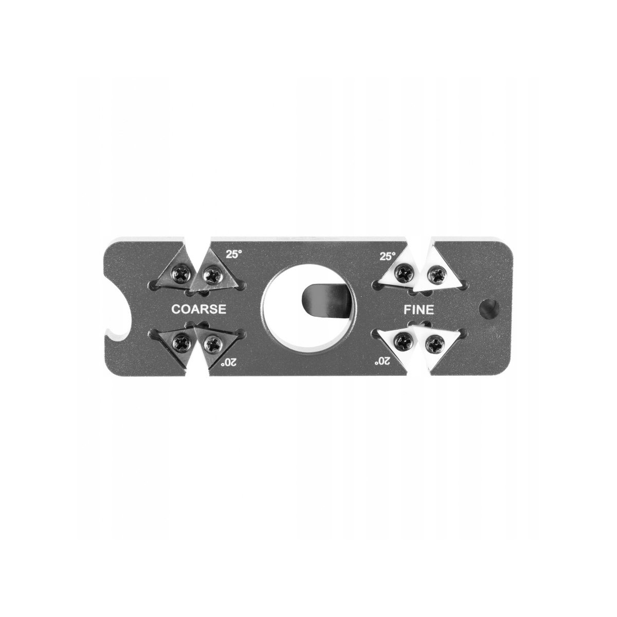 Ostrzałka THE EDGE edcSHARP srebrna jest ultralekka i kompaktowa. Możliwość naostrzenia scyzoryka, noża edc i outdoorowego w szybki sposób. Ostrzałka wykonana została z aluminium lotniczego metodą precyzyjnego cięcia laserem. Posiada funkcję otwieracza do butelek oraz klips i otwór na linkę lub smycz, dzięki czemu można ją wygodnie nosić w kieszeni spodni.