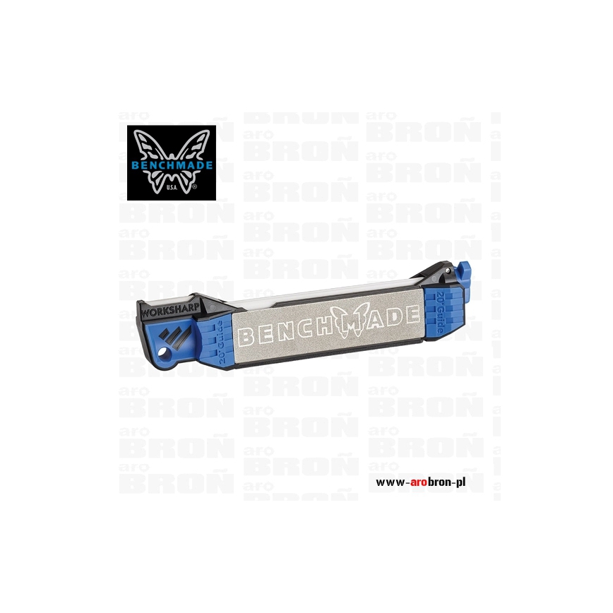Ostrzałka Benchmade Worksharp - to łatwa w obsłudze i funkcjonalna ostrzałka przeznaczona do ostrzenia podstawowych narzędzi. Posiada ona kamienie diamentowe, kamienie ceramiczne oraz skórzany pasek do końcowego etapu ostrzenia. Proces ostrzenia jest niezwykle łatwy oraz szybki, dzięki zastosowanym specjalnym prowadnicom. Dzięki nim ustawimy nóż bądź nożyczki pod odpowiednim kątem. WorkSharp posiada również możliwość ostrzenia krawędzi ząbkowanych.